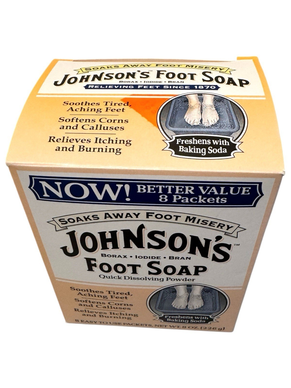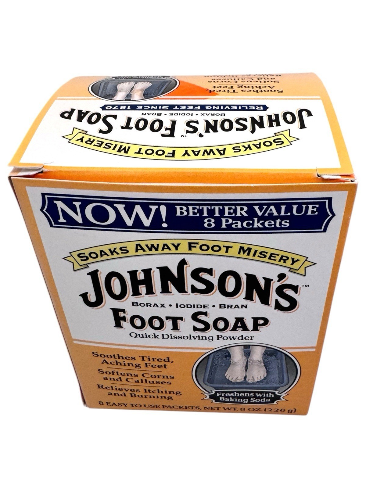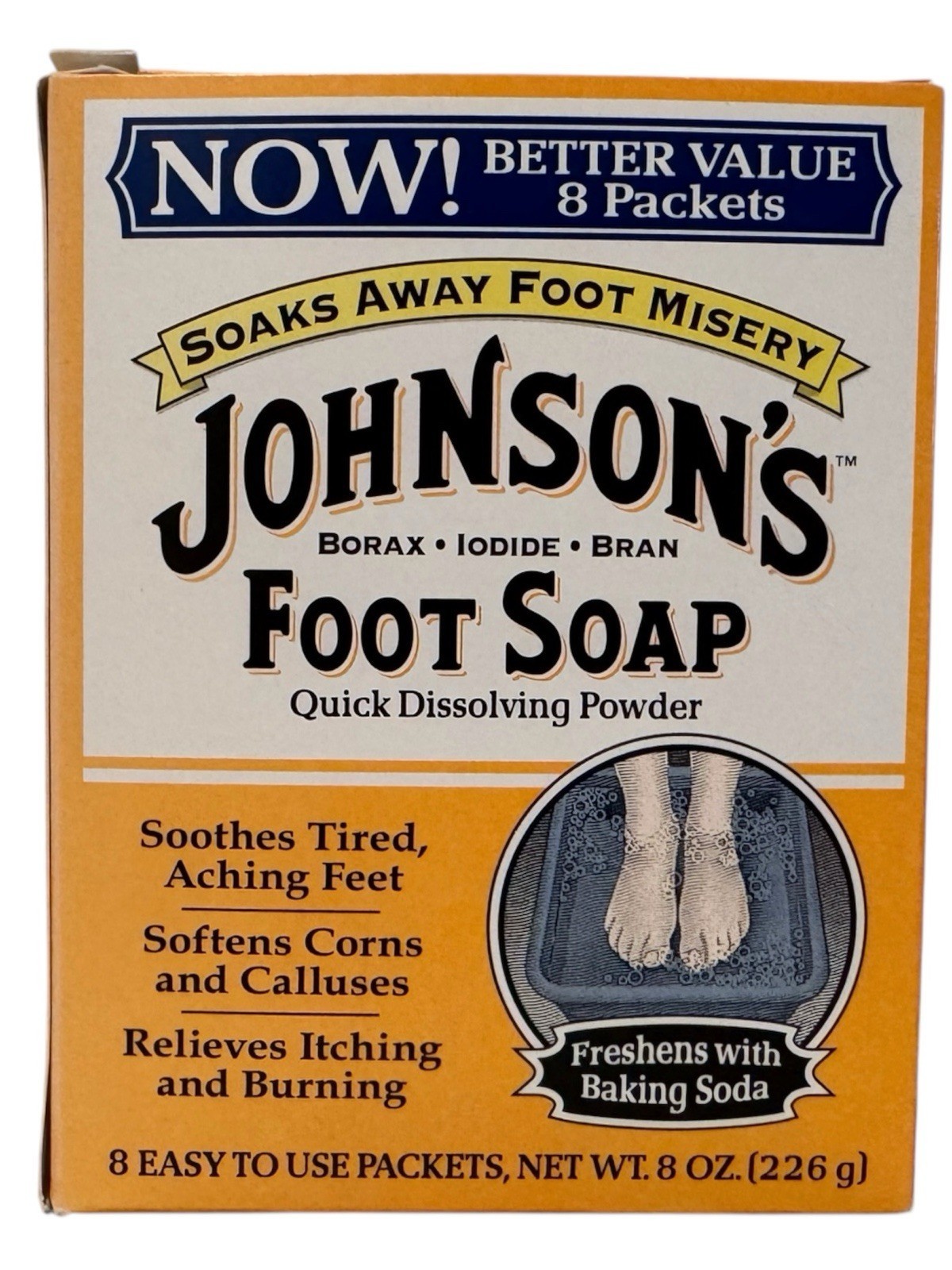 JOHNSON'S Foot Soap Powder Dissolving Soak 8 Pack New in Box - For Aching Feet