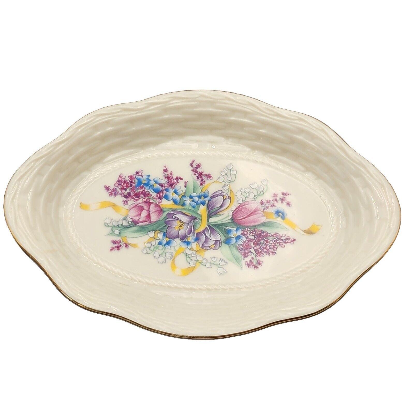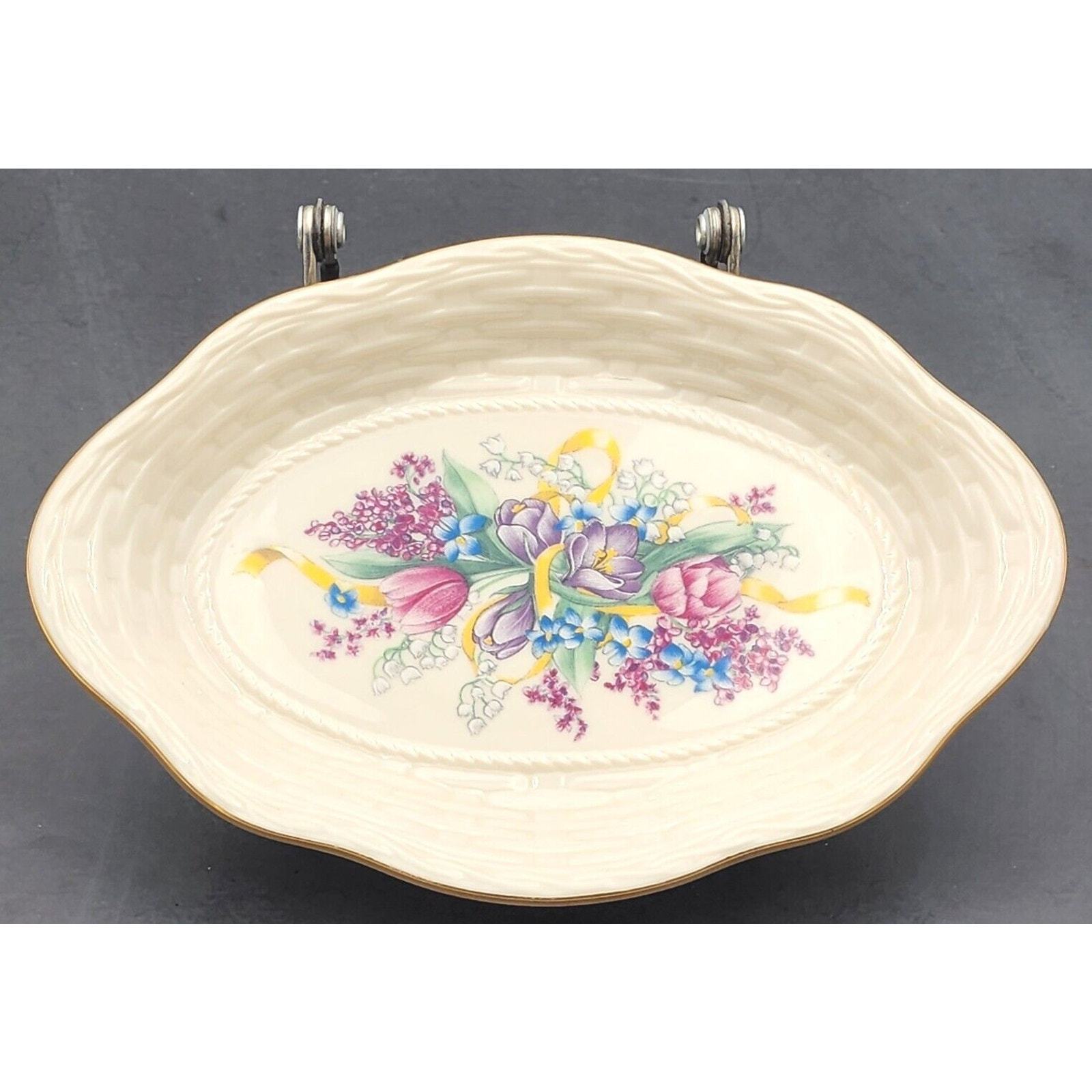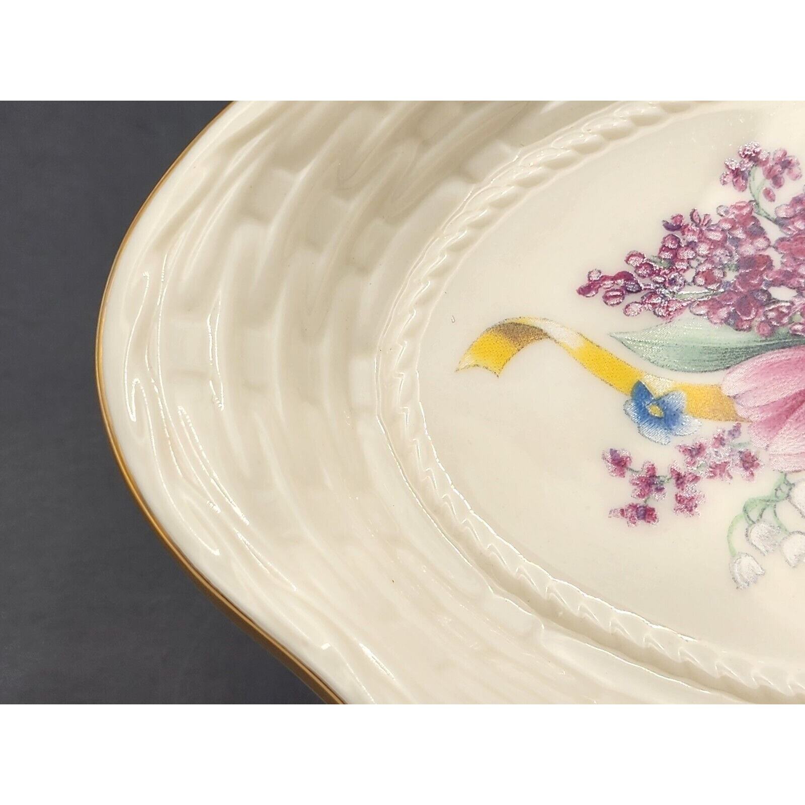 Lenox Candy Dish Purple Flowers With Yellow Ribbon 1980's Rare Vintage 7.5"