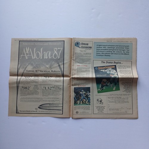 This listing is for an original copy of The Official Dallas Cowboys Weekly Magazine. This is the February 1987 Issue. This vintage newspaper style magazine features articles and stories about various players, coaches and team members.
