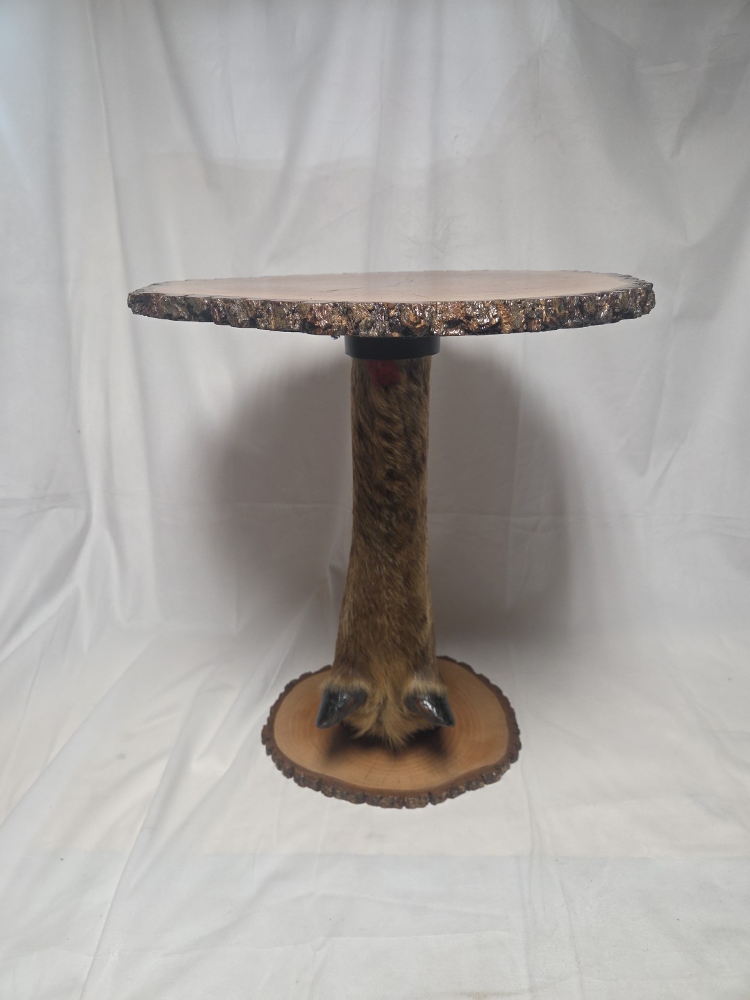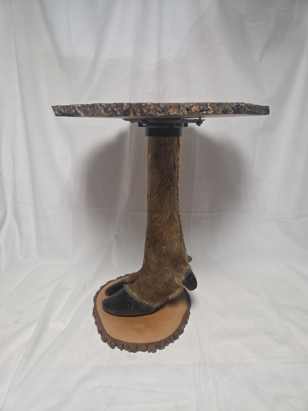 Real Moose Leg Pedestal/Table 18.5" Tall 17" Wide Wood Top and Bottom