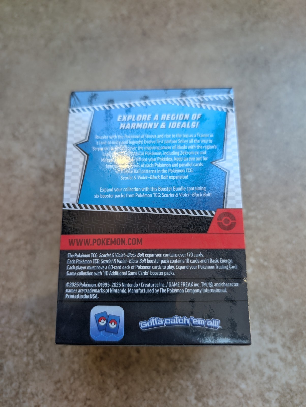 Explore a Region of Harmony Ideals! Reunite with the Pokemon of Unova and rise to the top as a Trainer in a land of unity and legends! Evolve first partner Snivy all the way to Serperior ex, and discover the inspiring power of ideals with the region?s Legendary and Mythical Pokemon, including Zekrom ex and Meloetta ex. As you fill out your Pokedex, keep an eye out for special illustrations of each Pokemon and parallel cards with Poke Ball patterns in the Pokemon TCG: Scarlet Violet?Black Bolt expansion.