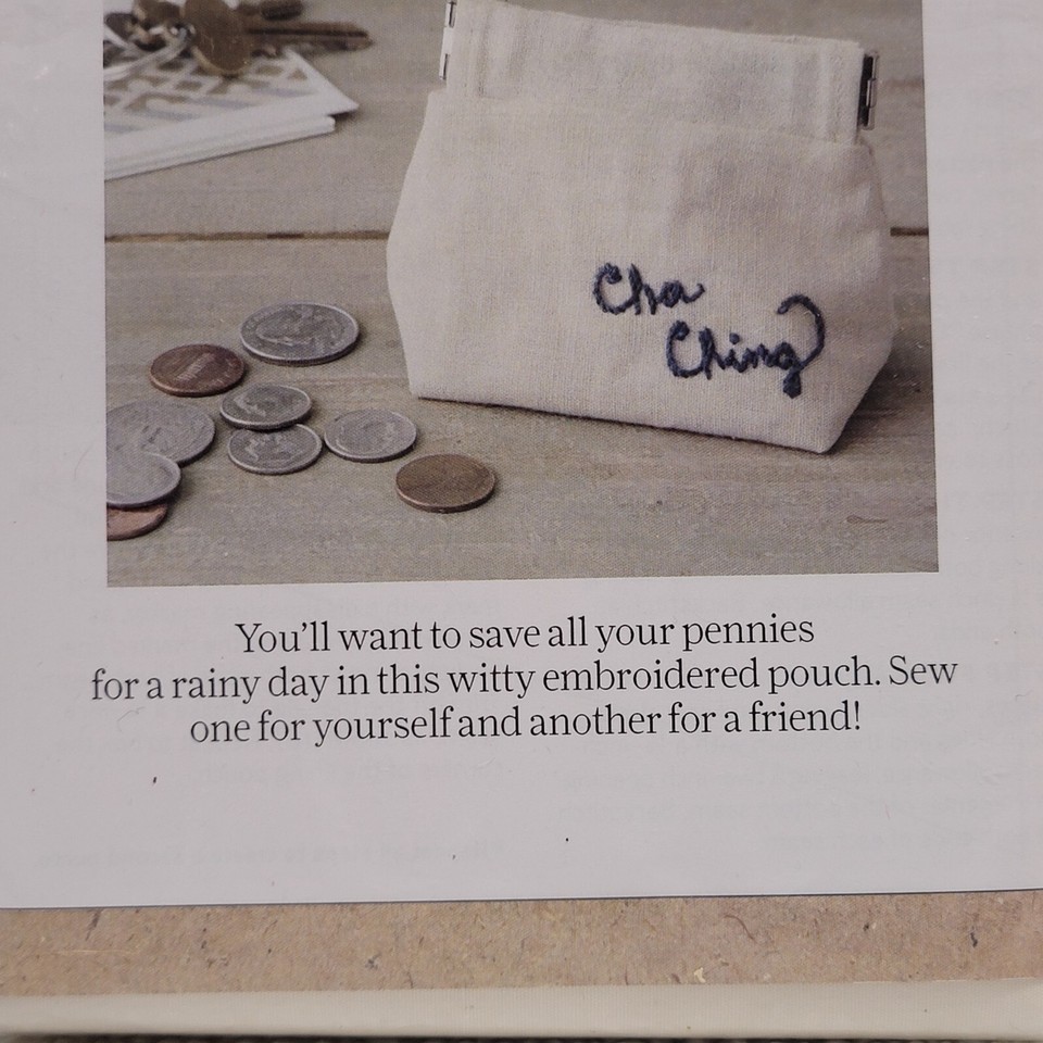 Country Living DIY At Your Doorstep - Cha Ching Coin Purse Sewing Kit. Images show actual item that will ship.