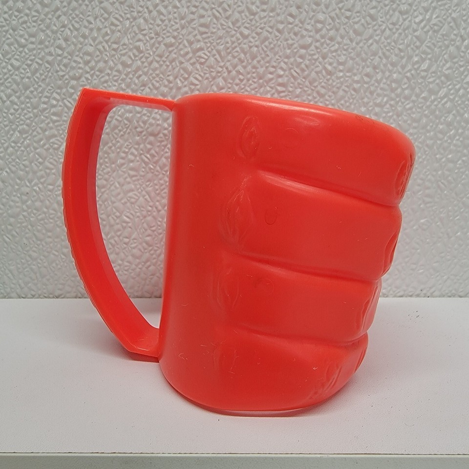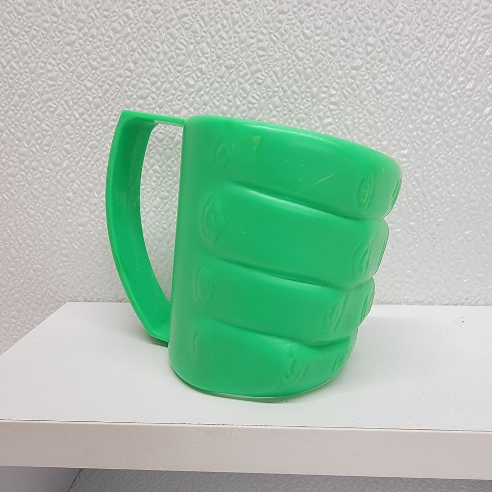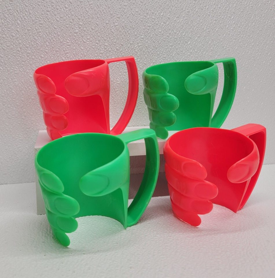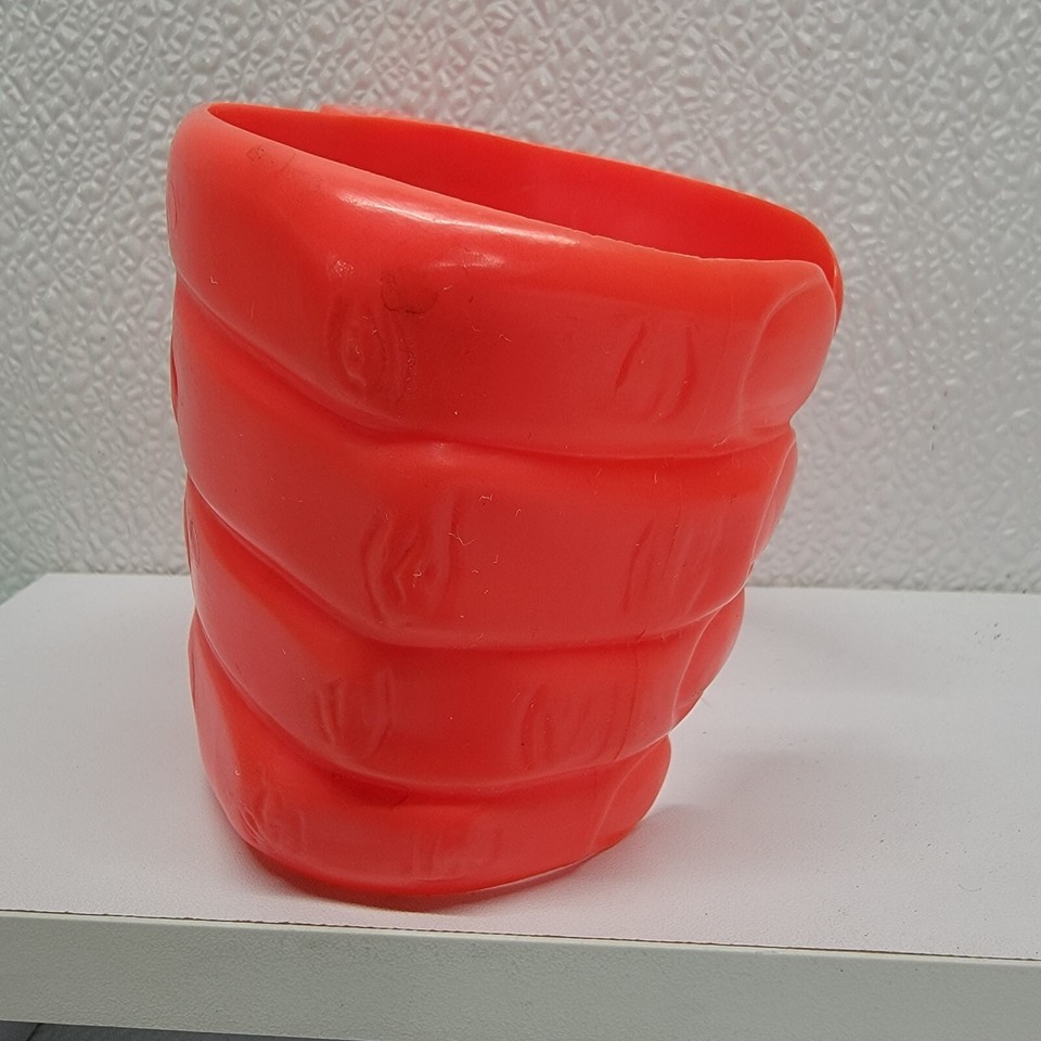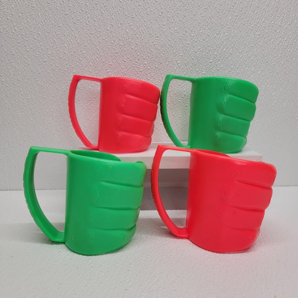 4 Vintage 7-Eleven Red Green Plastic Hand Cup Holder Drink Slurpee Advertisement. Images show actual items that will ship.