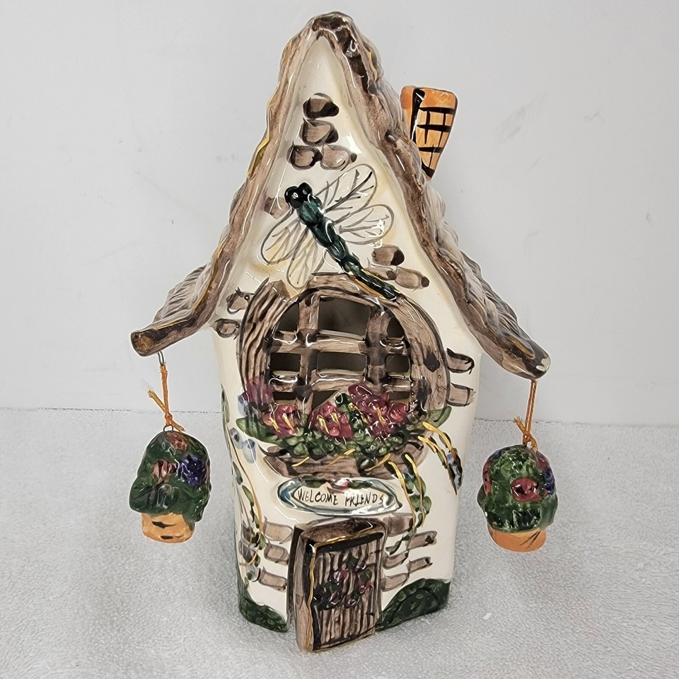 Blue Sky Clayworks Tealight House Heather Goldminc DRAGONFLY WELCOME FRIENDS