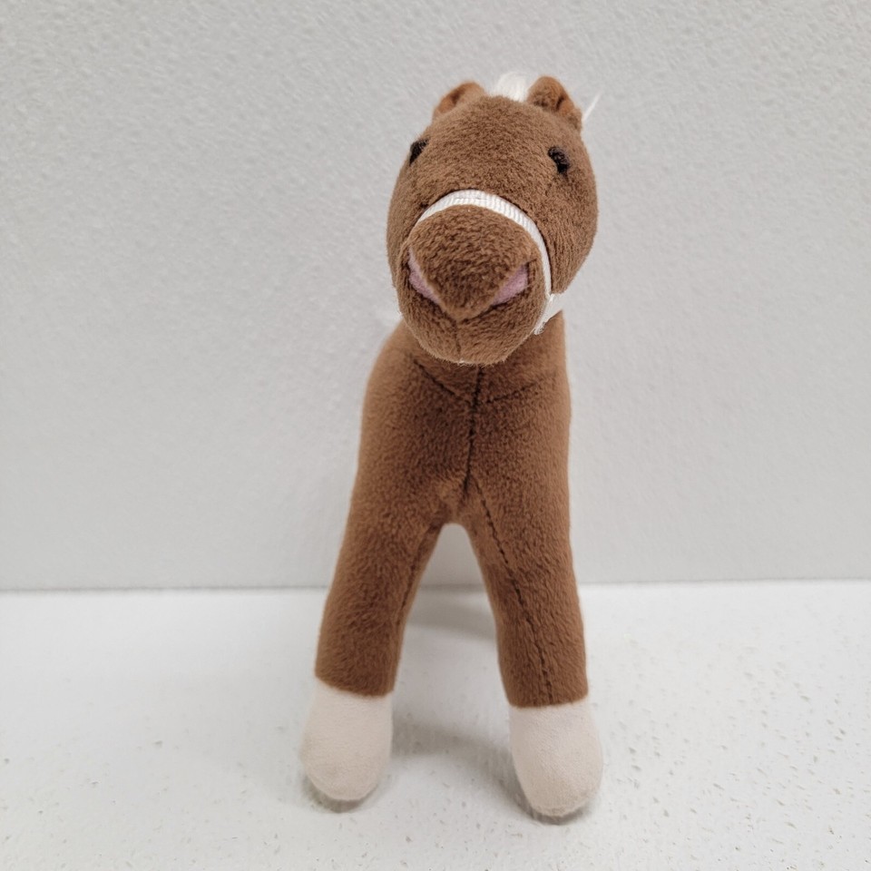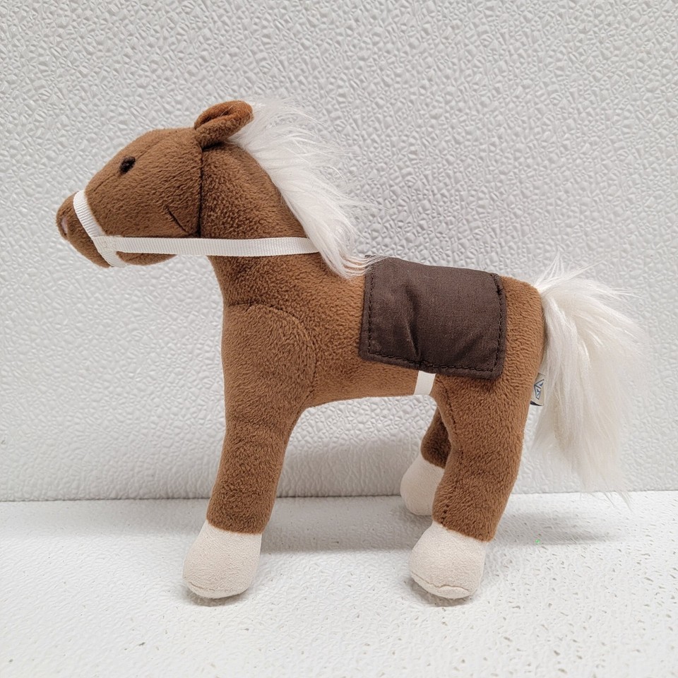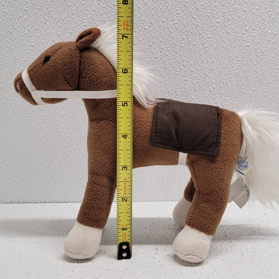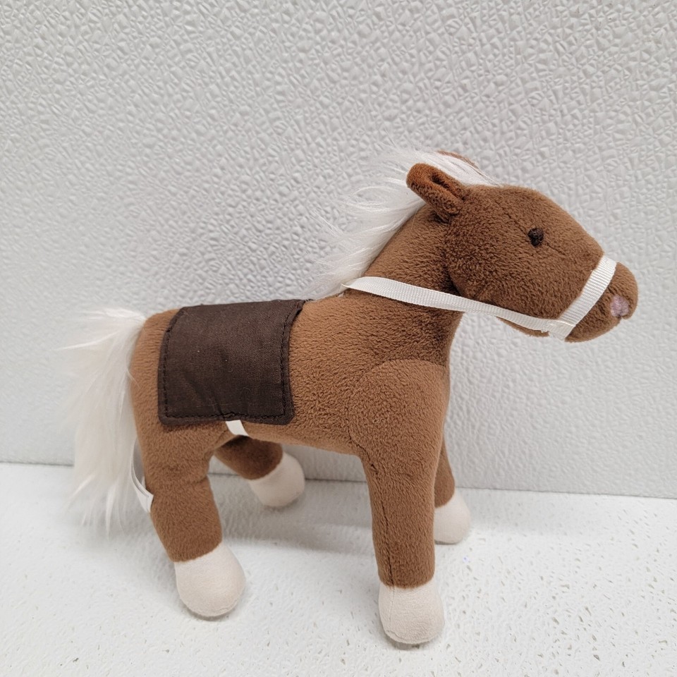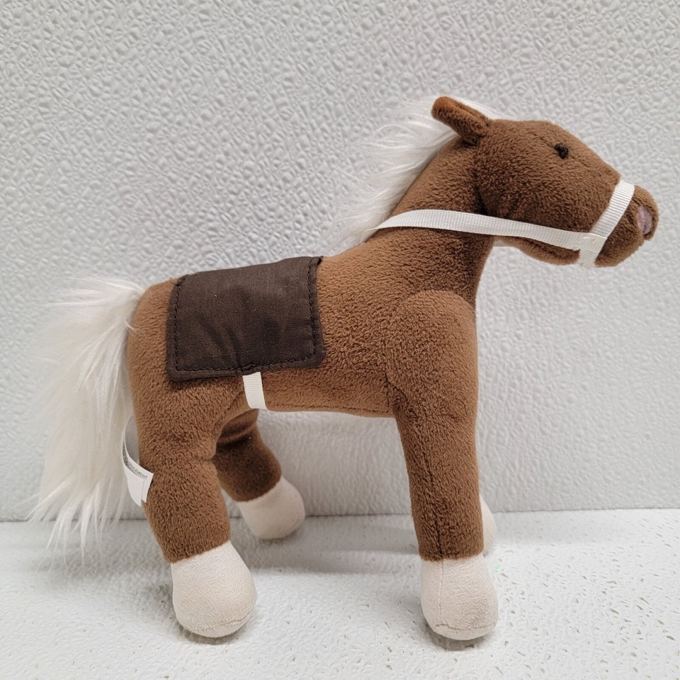 Pottery Barn Kids Small Brown Horse White Mane and Tail Plush With Bridle Saddle 7". Images show actual item that will ship.