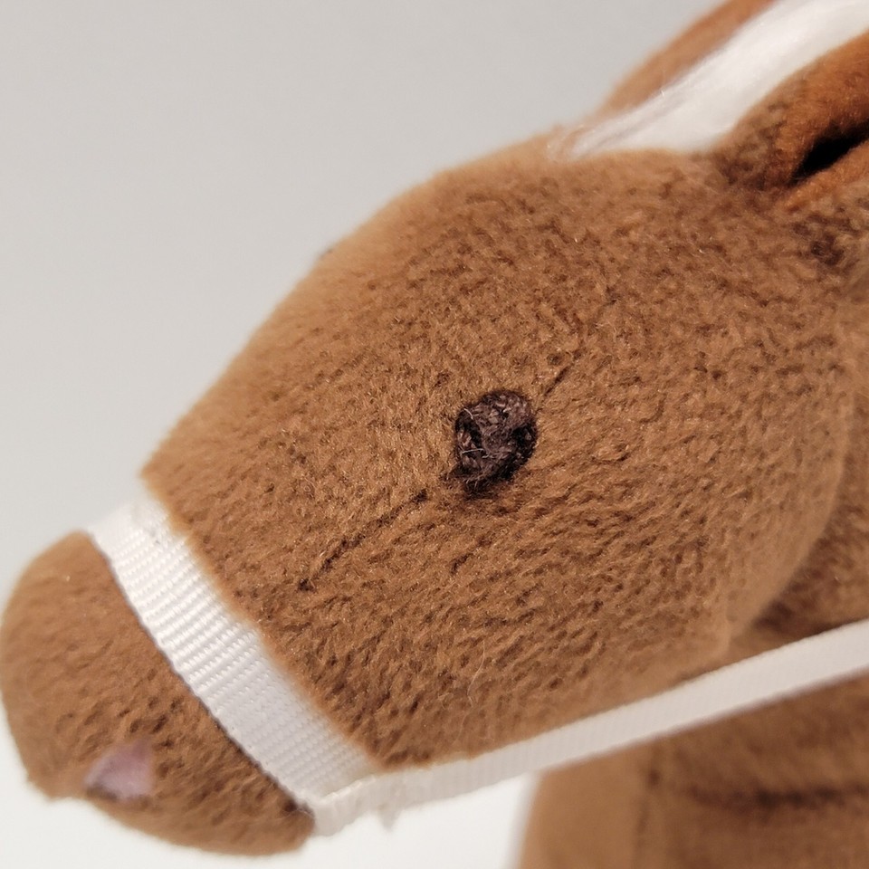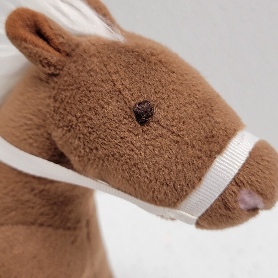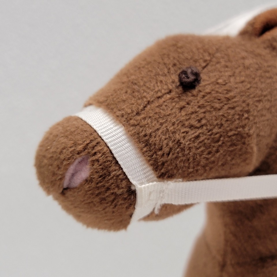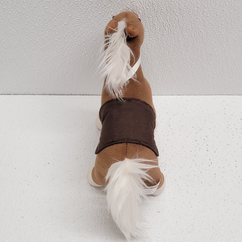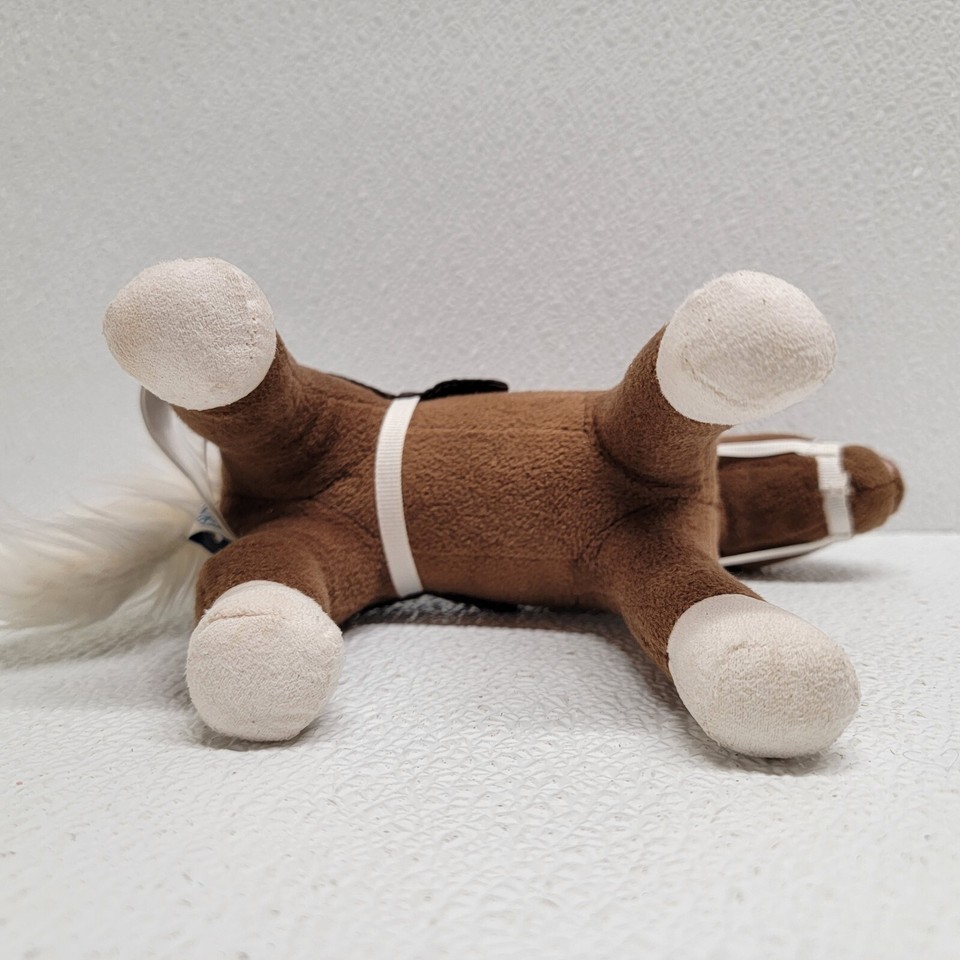 Pottery Barn Kids Small Brown Horse White Mane and Tail Plush With Bridle Saddle 7". Images show actual item that will ship.