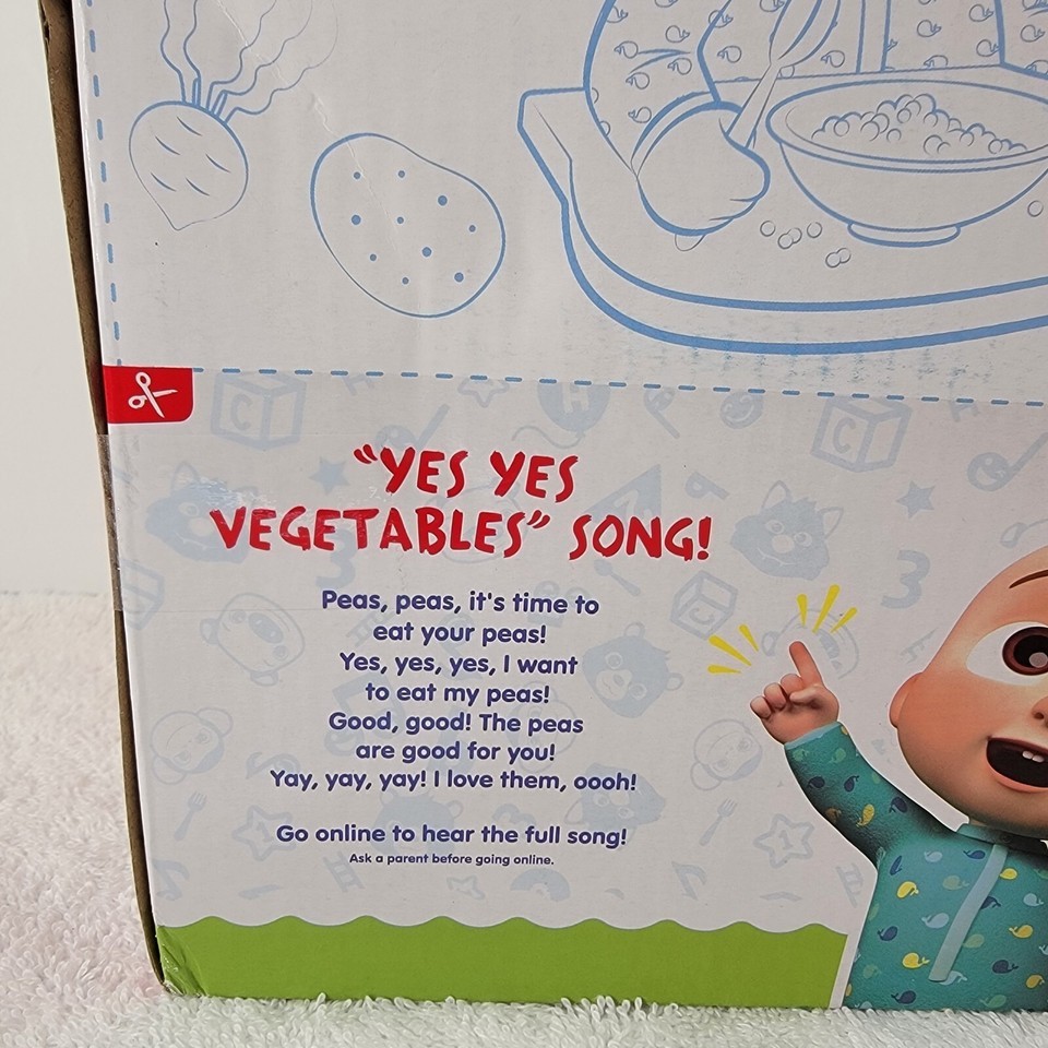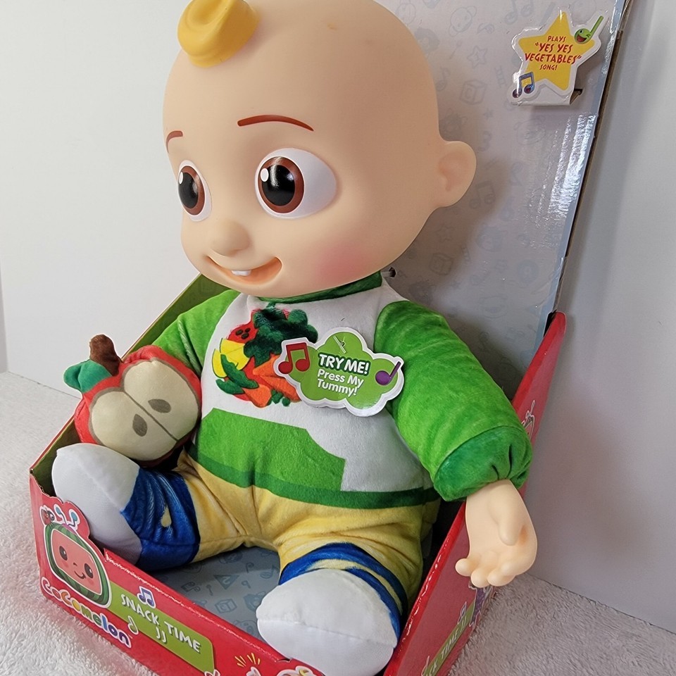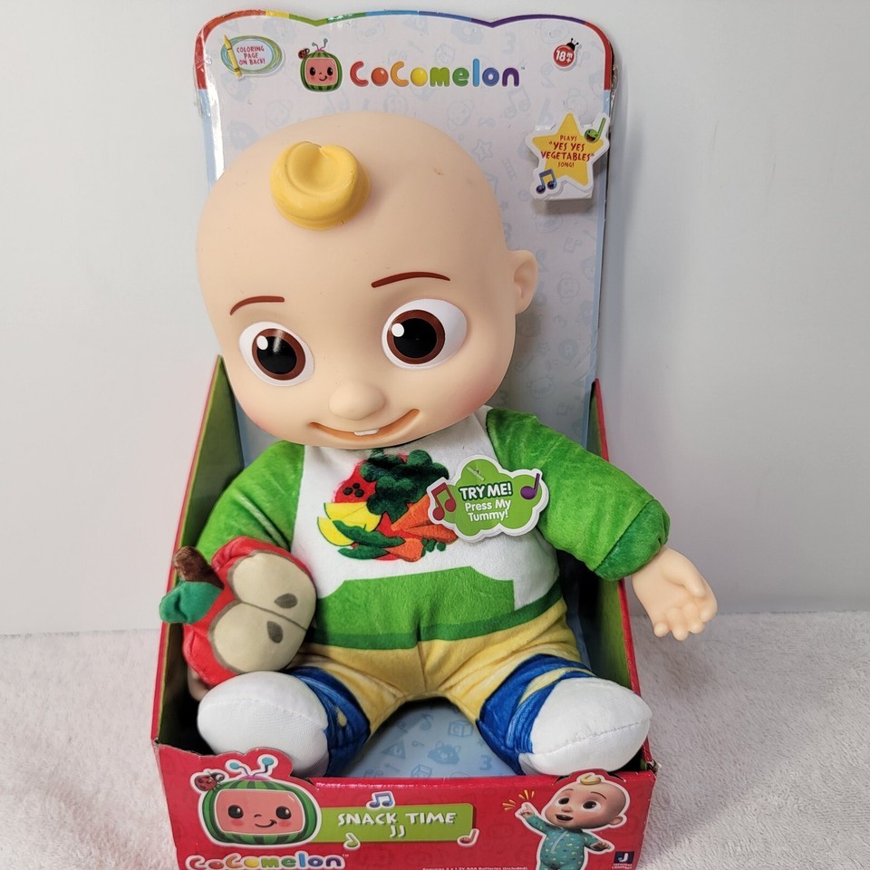 New CoComelon Snack Time JJ Plush Doll Sings ?Yes, Yes Vegetables? Song Phrases