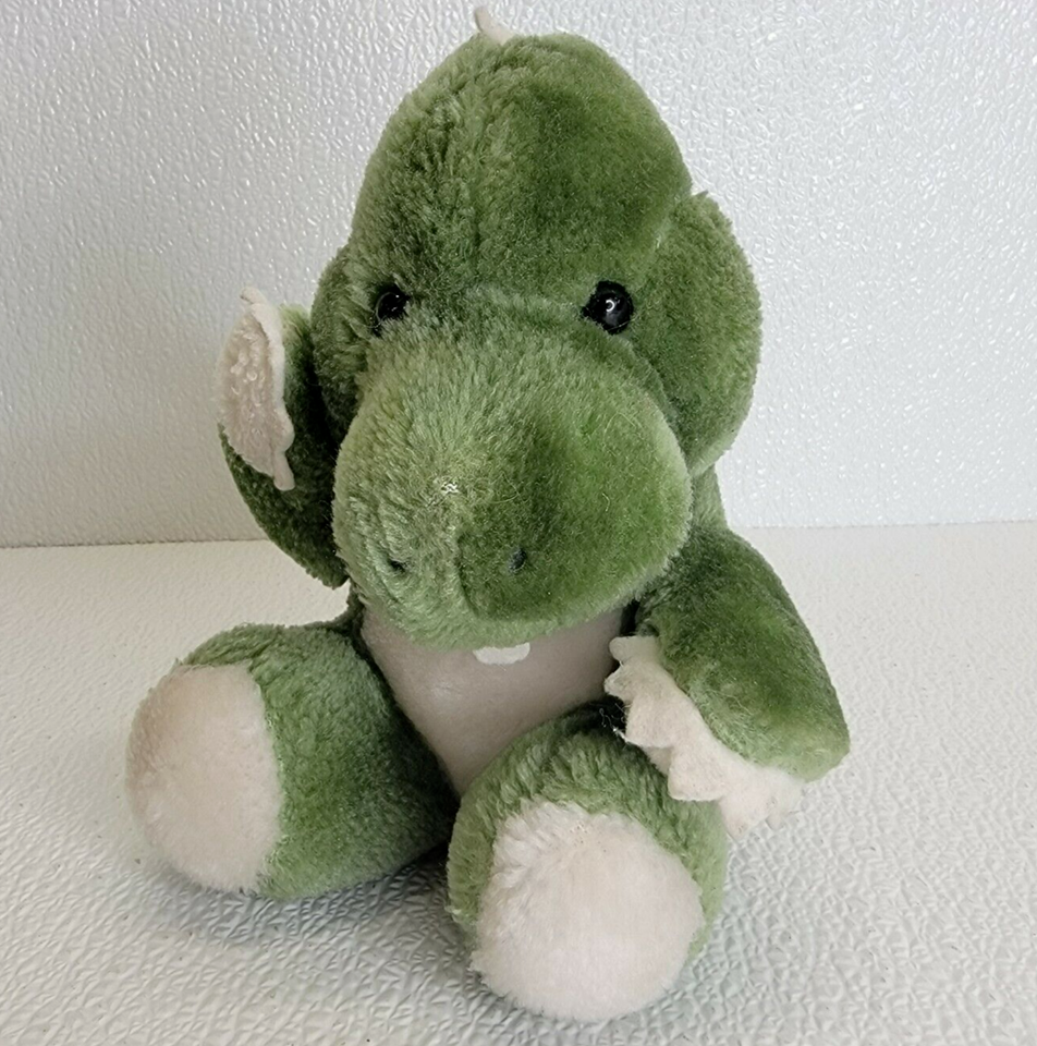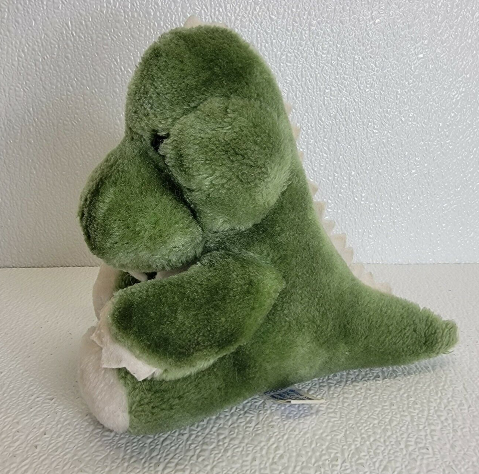 Vintage 1984 Swib Green White Dinosaur Plush Stuffed Animal Tooth Cute. Images show actual plush that will ship.