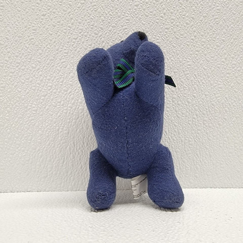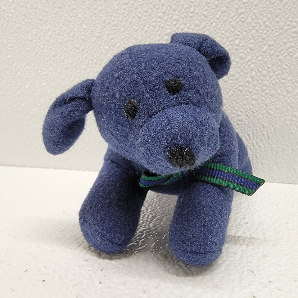 Vintage 1994 Eddie Bauer Blue Dog 6" Plush. Blue green ribbon bow. Images show actual plush that will ship.