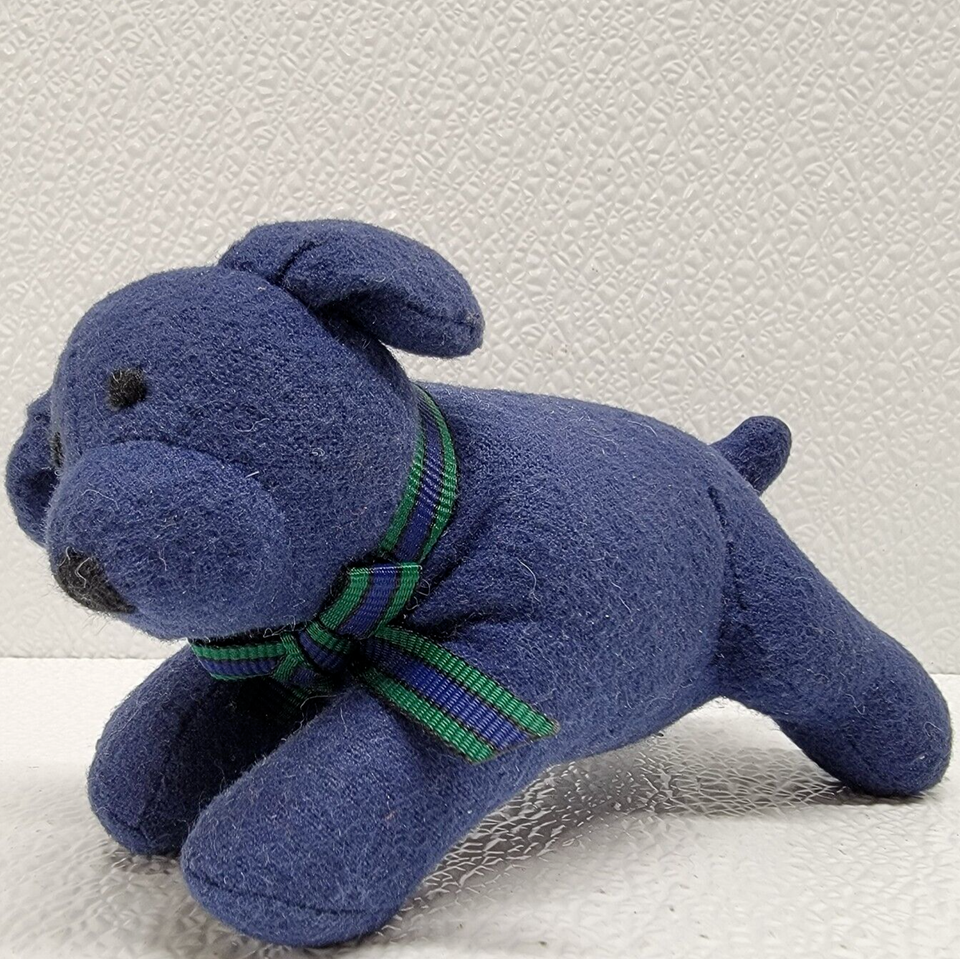 Vintage 1994 Eddie Bauer Blue Dog 6" Plush Blue Green Ribbon Bow