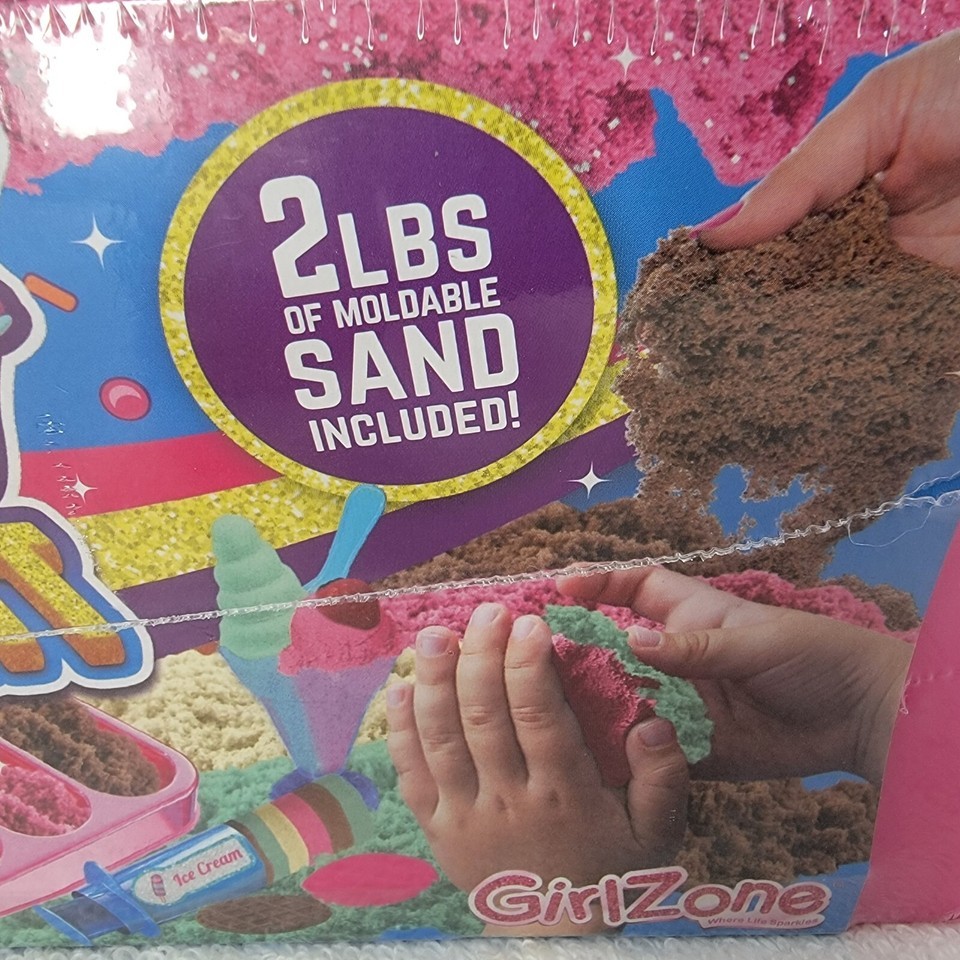 GirlZone Ice Cream Shop Play Sand Kit Sensory Play 2lbs Moldable Sand w/ Tools