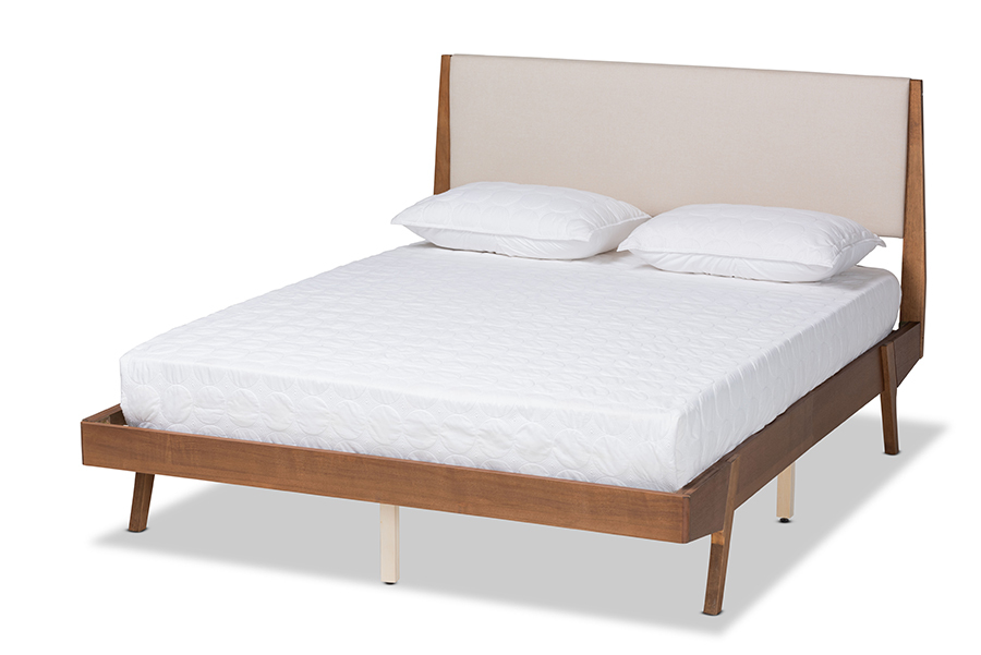 Bauer Beige Fabric Walnut Brown King Size Platform Bed