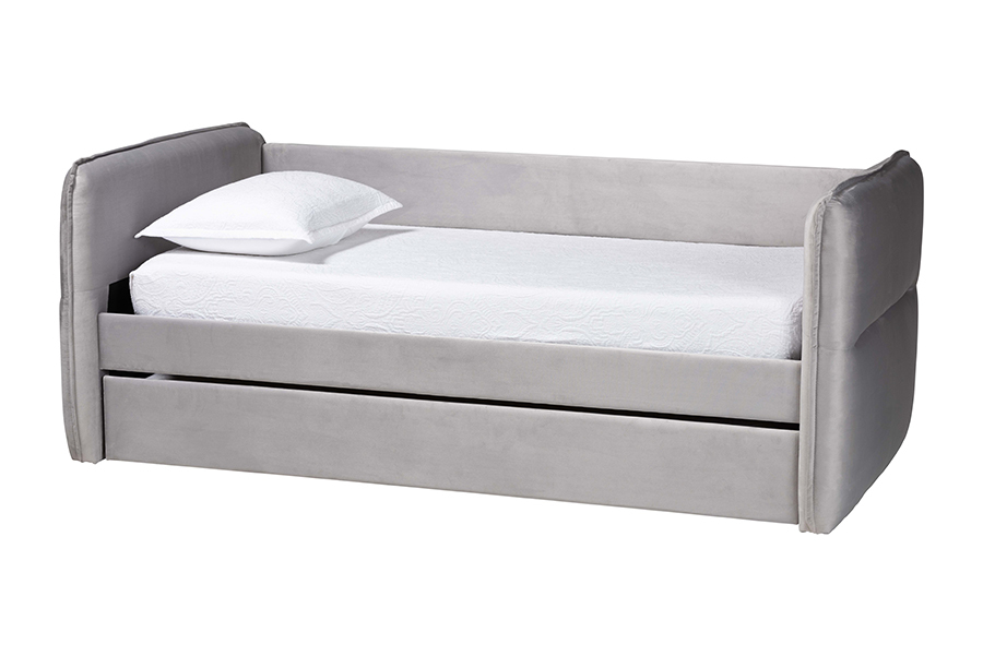 Parkin Modern Light Gray Velvet Fabric Twin Size Daybed w/Trundle