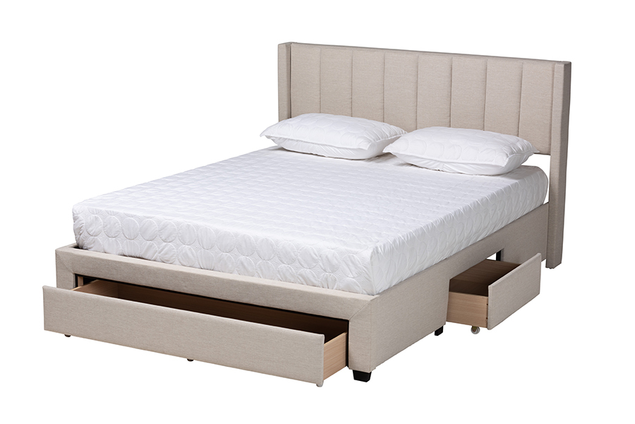 Dennehy Beige Fabric Full Size 3-Drawer Storage Platform Bed