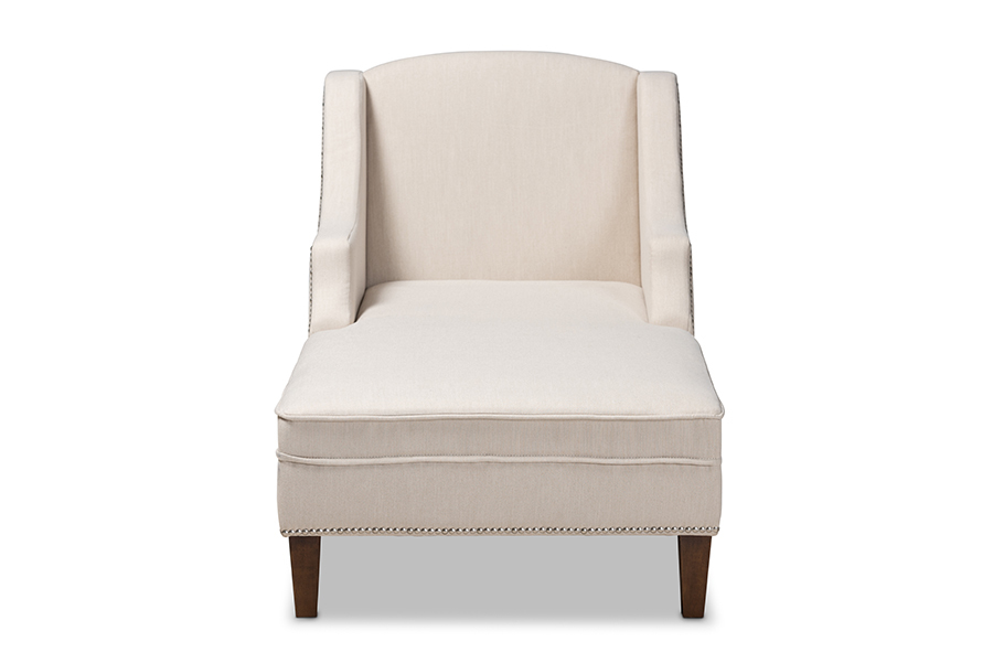 Jaclyn Beige Fabric Upholstered Wenge Brown Finished Chaise Lounge