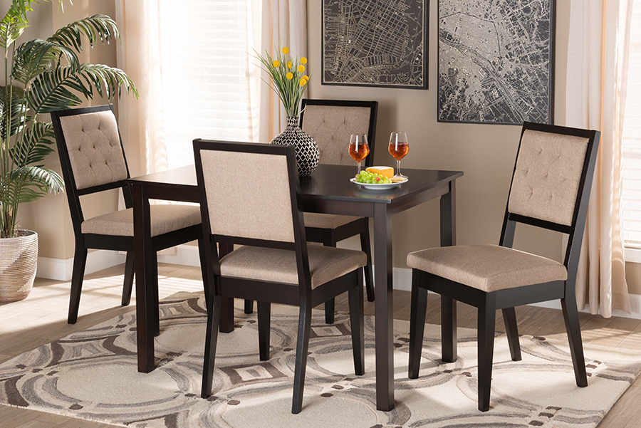 Cyntia Sand Fabric Upholstered and Dark Brown 5-Piece Dining Set