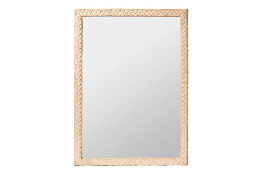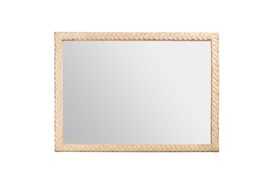 Material: Braided Natural Rattan + Mahogany Wood/Mirrored Glass/Plywood(Backside)