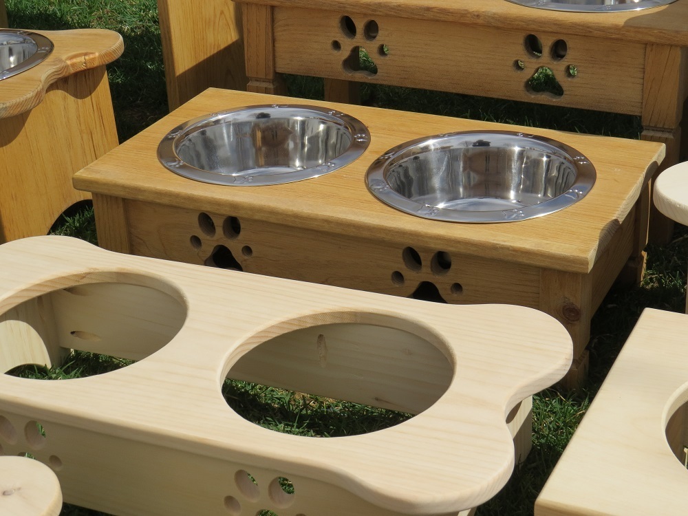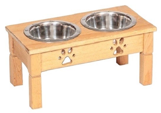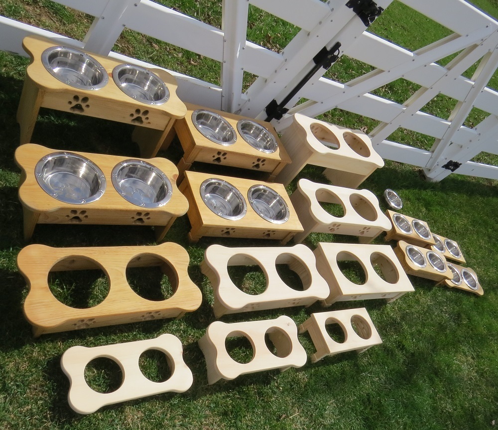 "TABLE TOP" DOG FEEDER Amish Handmade Medium Elevated Stand 2QT Paw Print Bowls