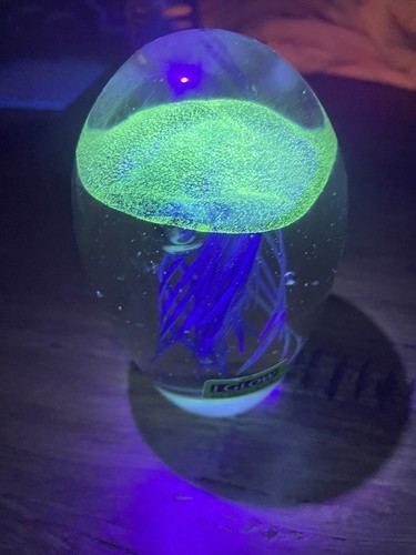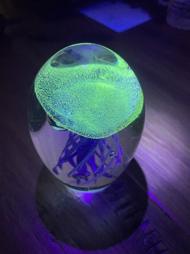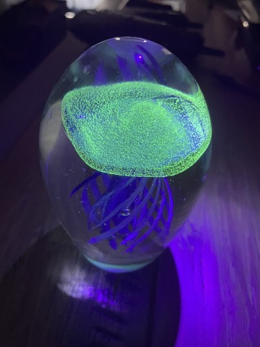 Art Glass Pink Jellyfish Paperweight Glows in the dark / Blacklight CV JD