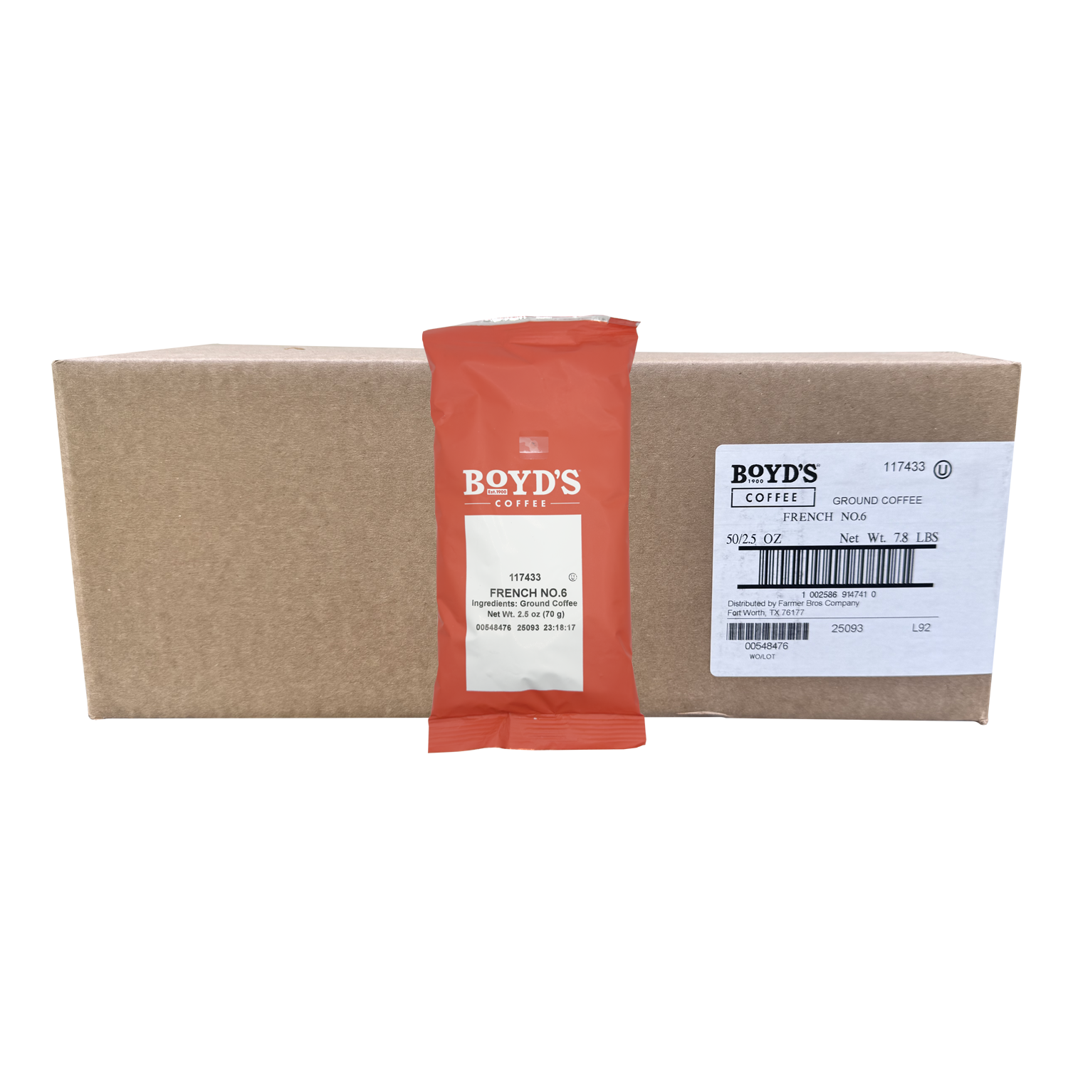 Boyd's French No.6 Ground Coffee 50/2.5oz Packets By Farmer Bros 117433
