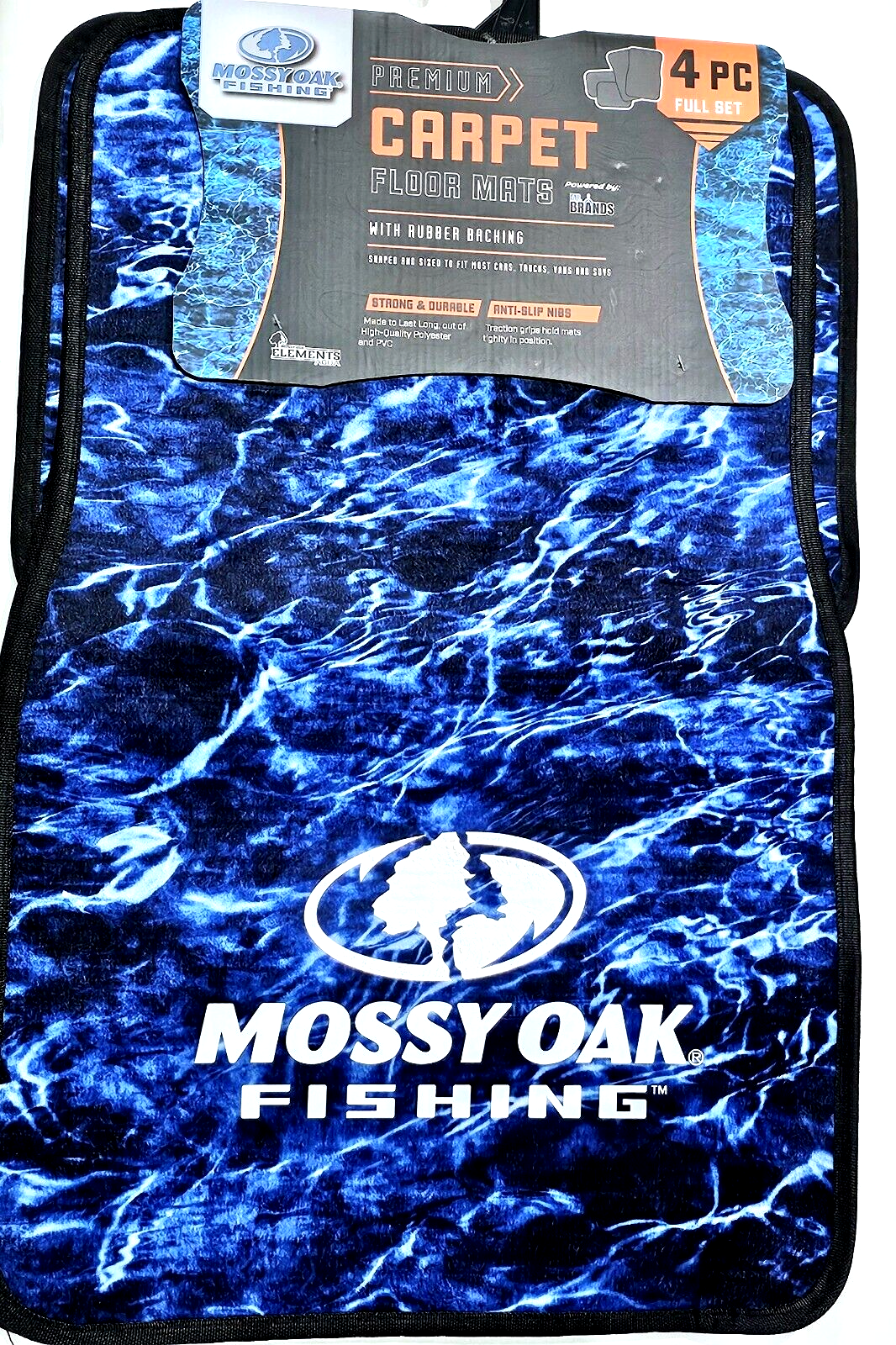 Mossy Oak Fishing Premium 4pc Full Set Auto Car Carpet Floor Mats Blue Rubber