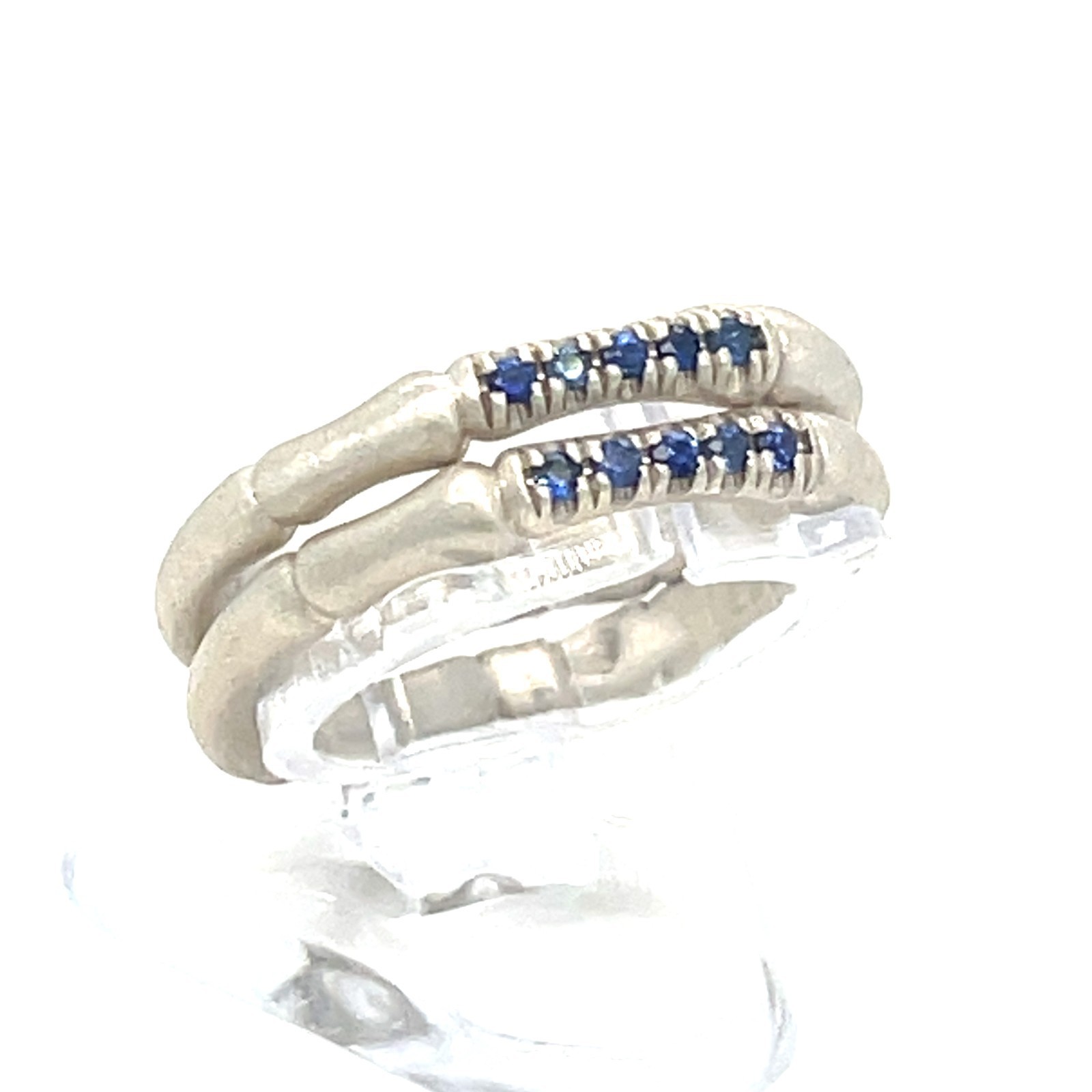 Sterling 18k White Vermeil Bamboo 3 mm Ring w/ Blue Sapphire Accents Sz 6