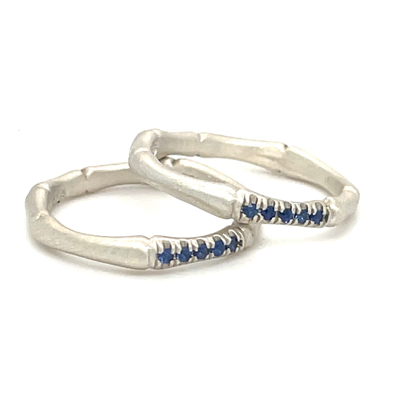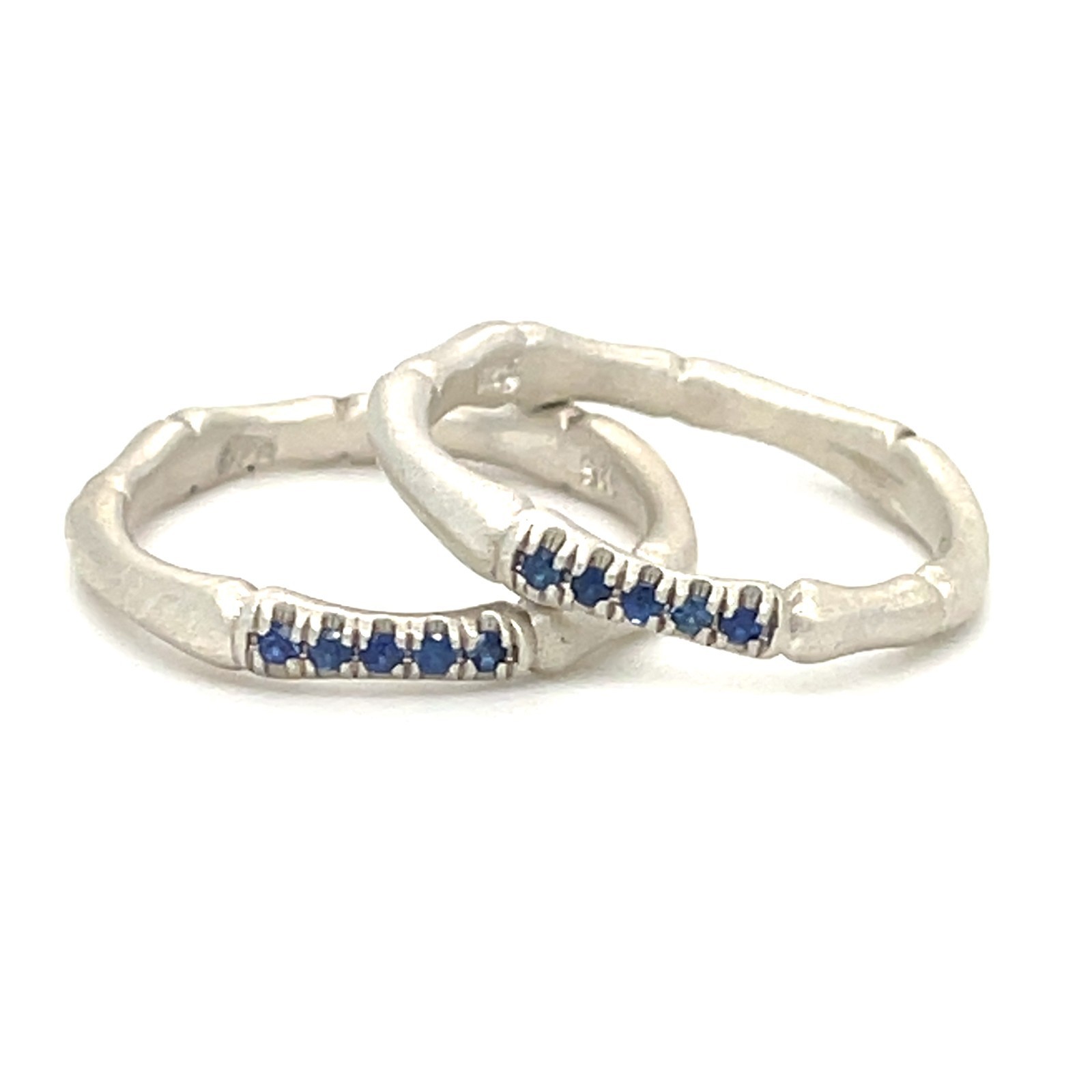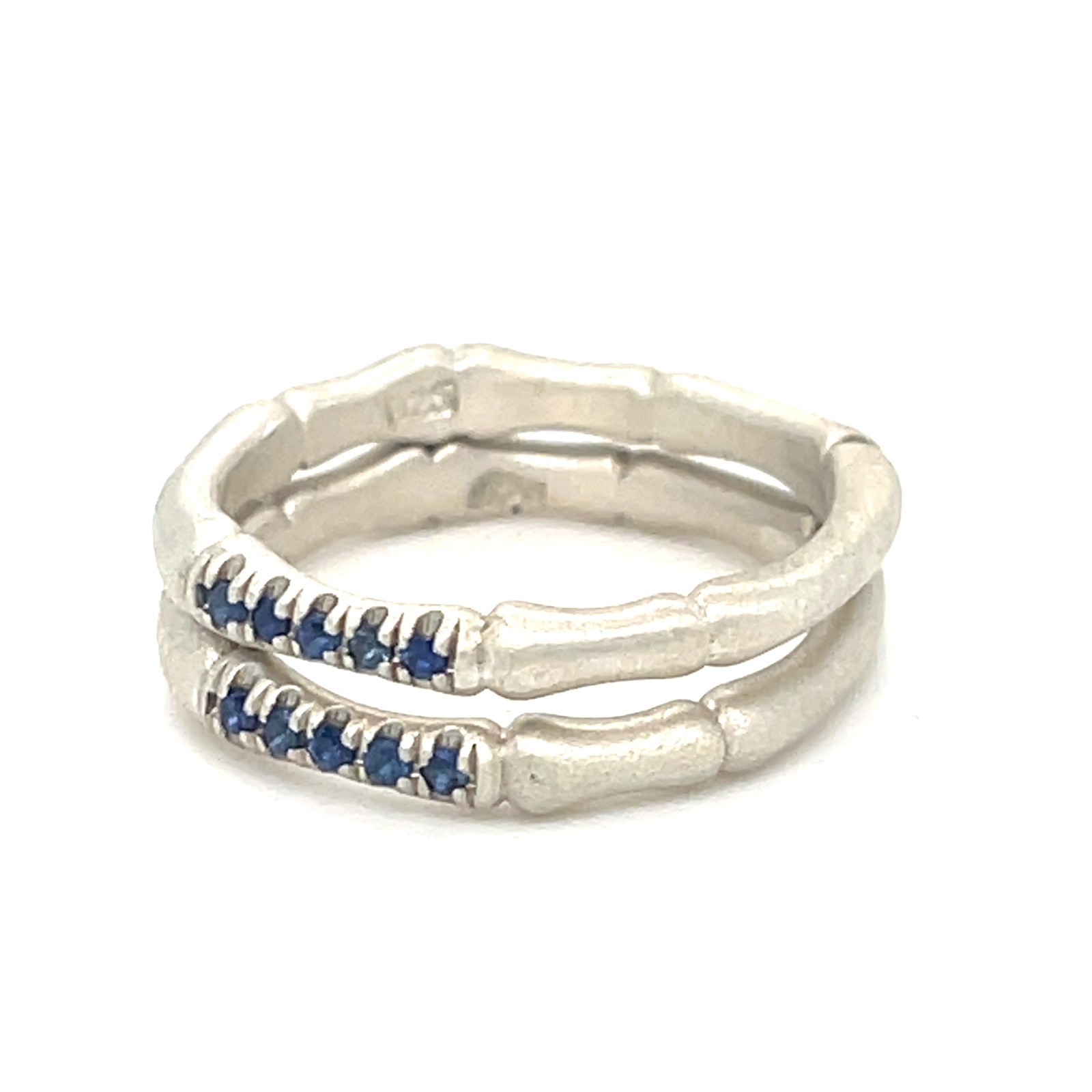Sterling Silver 18k White Vermeil Bamboo 3mm Ring w/ 0.10 TCW Blue Sapphire Accents Sz 6