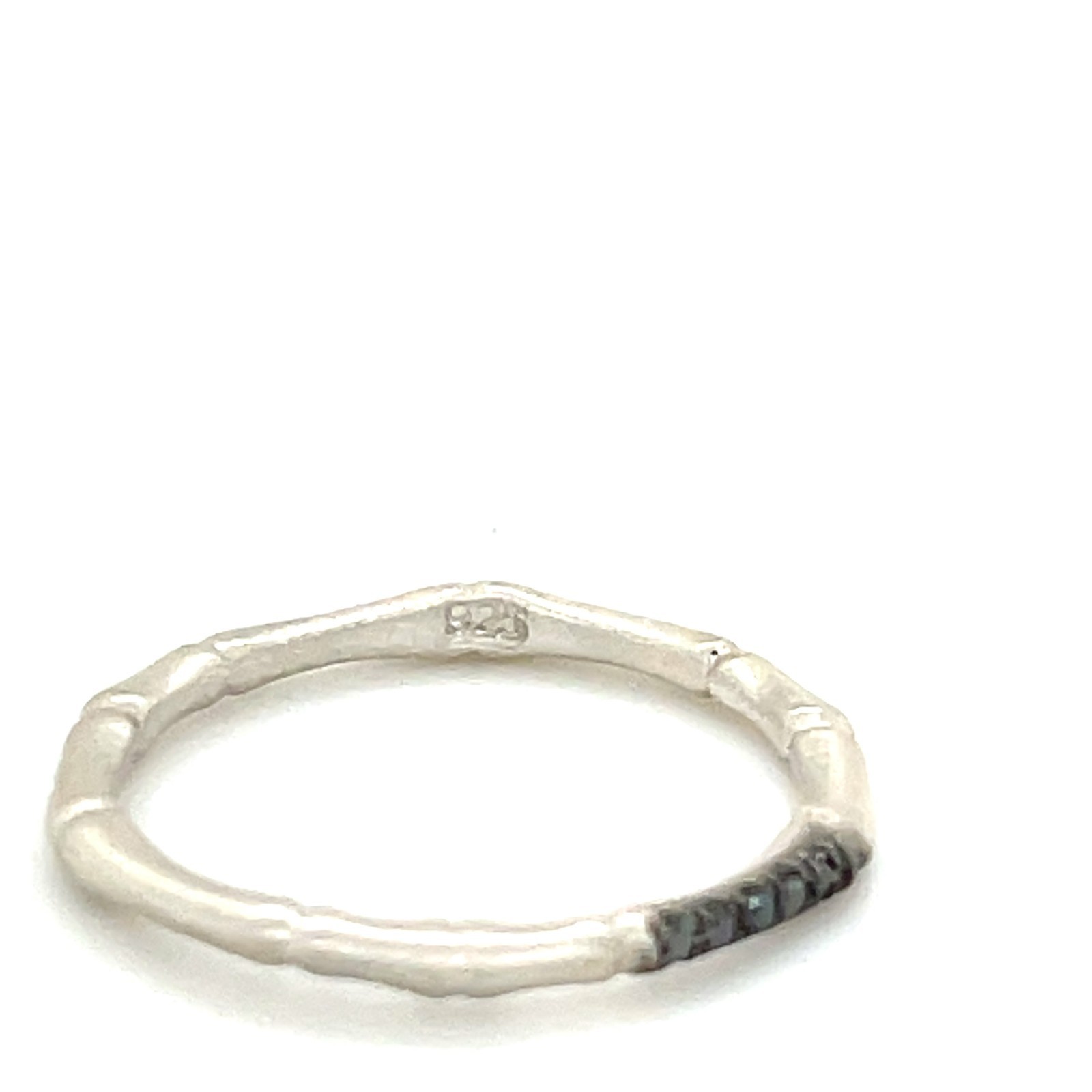 Sterling 18k White Vermeil Bamboo 2 mm Ring w/ 0.05 TCW Black Diamonds Sz 5.50