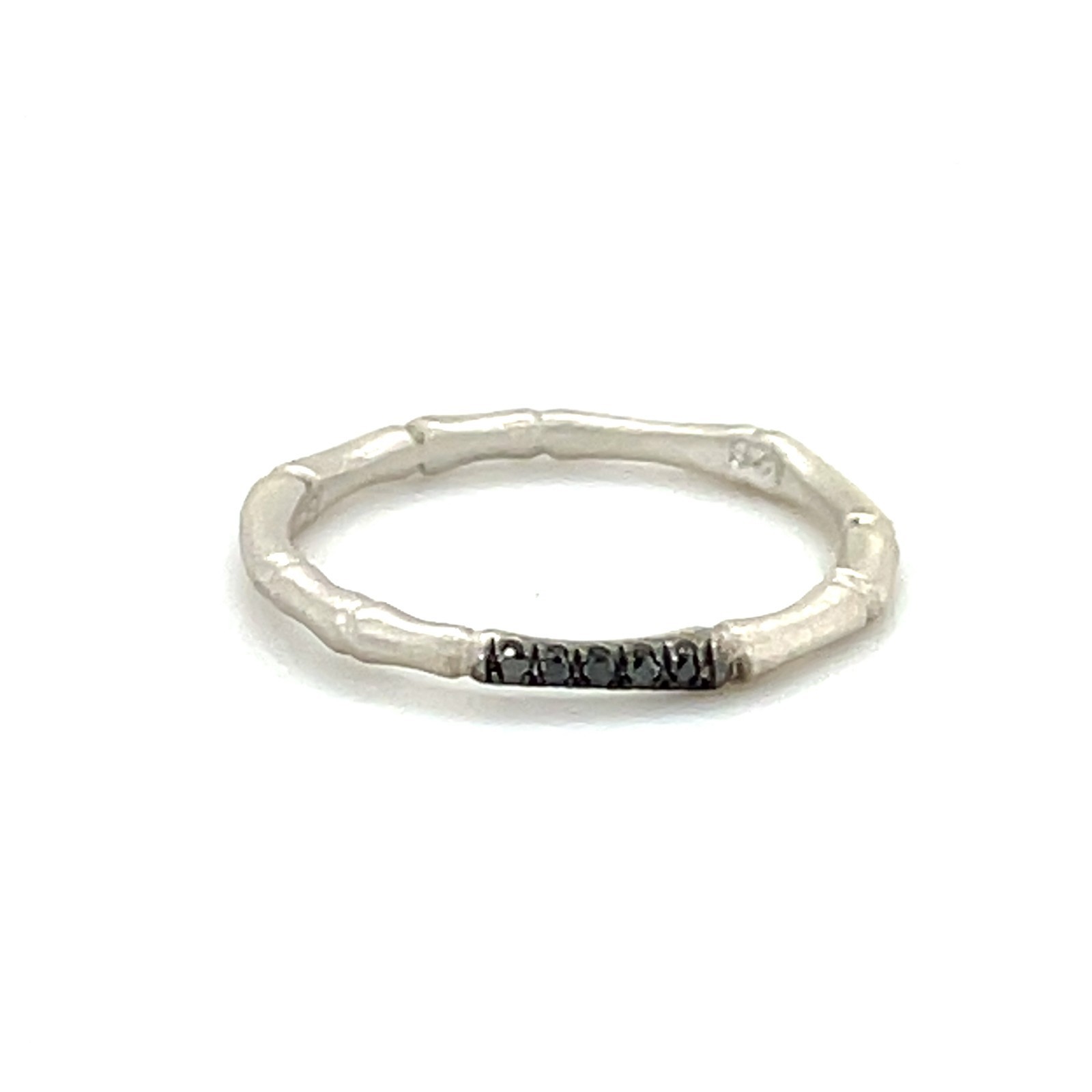 Sterling Silver 18k White Vermeil Bamboo 2mm Ring w/ 0.05 TCW Black Diamond Accents Sz 5.50