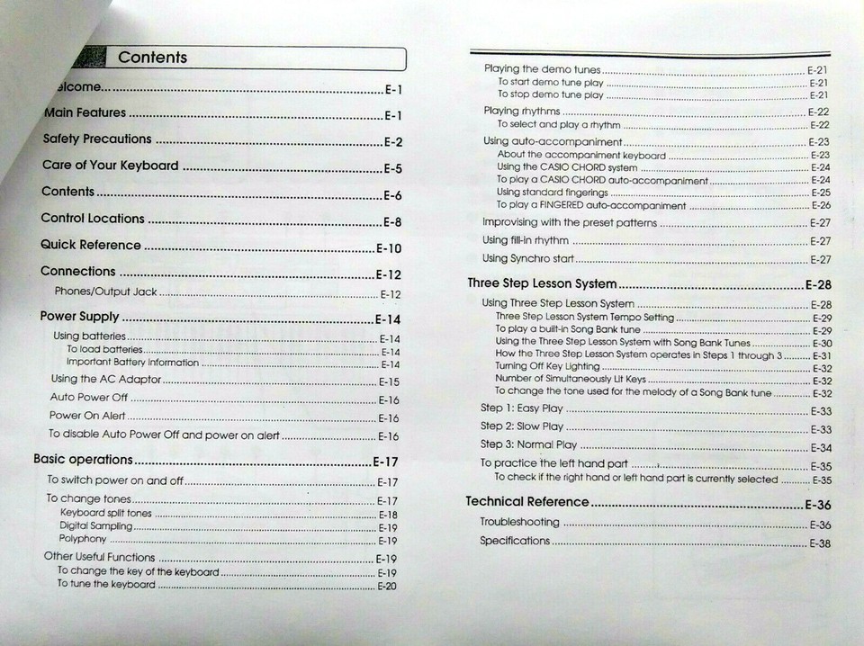 Casio CTK-555L CTK-560L Digital Piano Keyboard User's Owner's Manual Booklet.