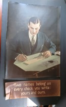 Vtg Banking Propaganda Poster Color Two Names on Every Check Obscure HTF Unusual