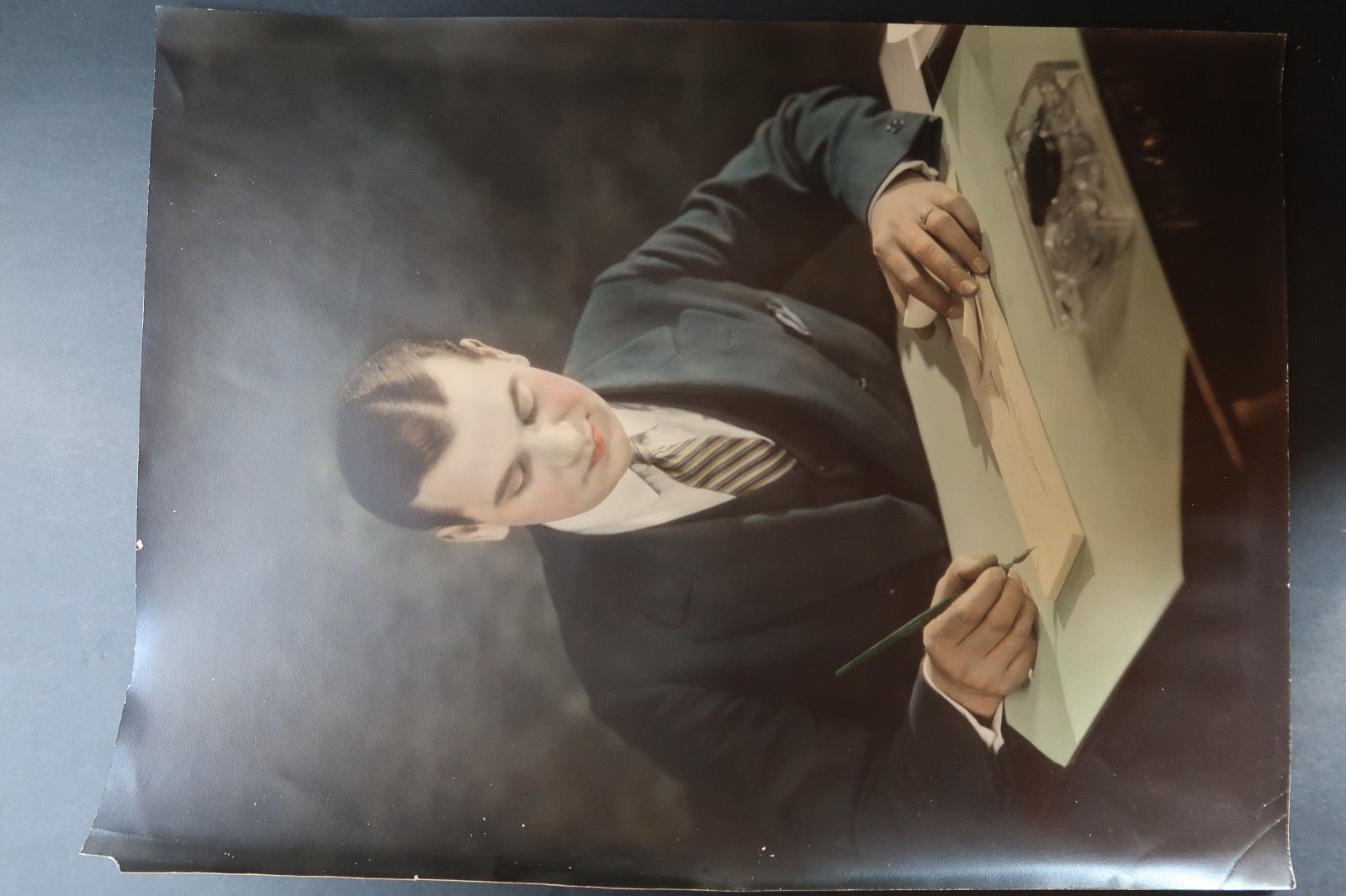 Needs to be framed and matted. A few small tears, a bunch of creases