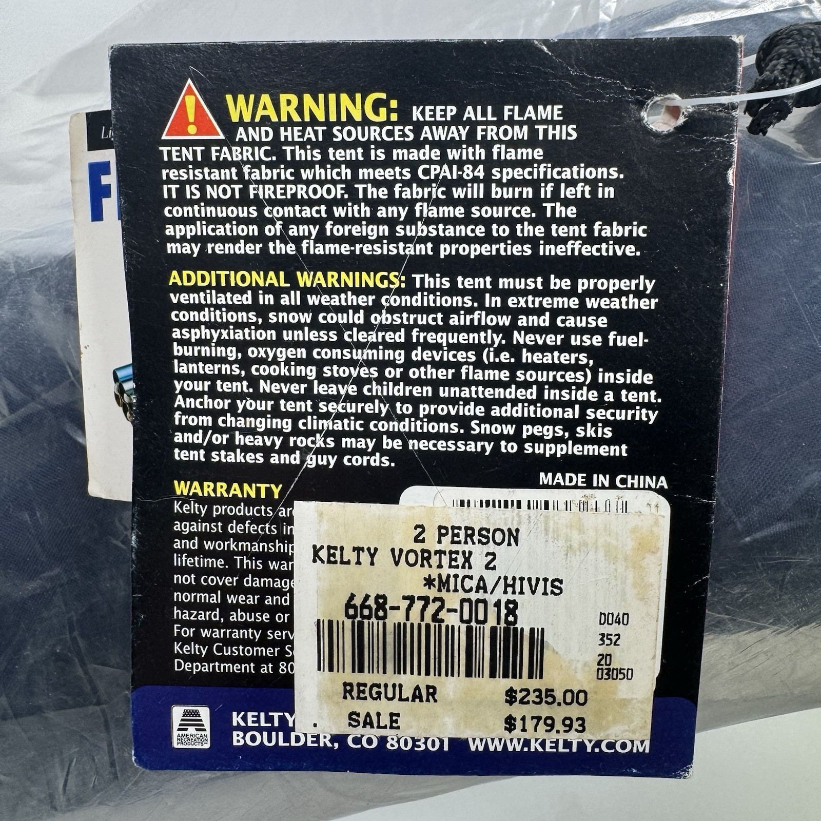 I purchased this tent from the original owner. He said he bought it new and never took it out of the bag. See pictures for more details.