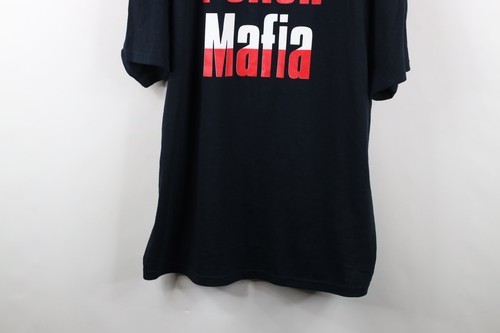 Vintage Y2K Streetwear Mens 2XL XXL Faded Spell Out Polish Mafia T-Shirt Black