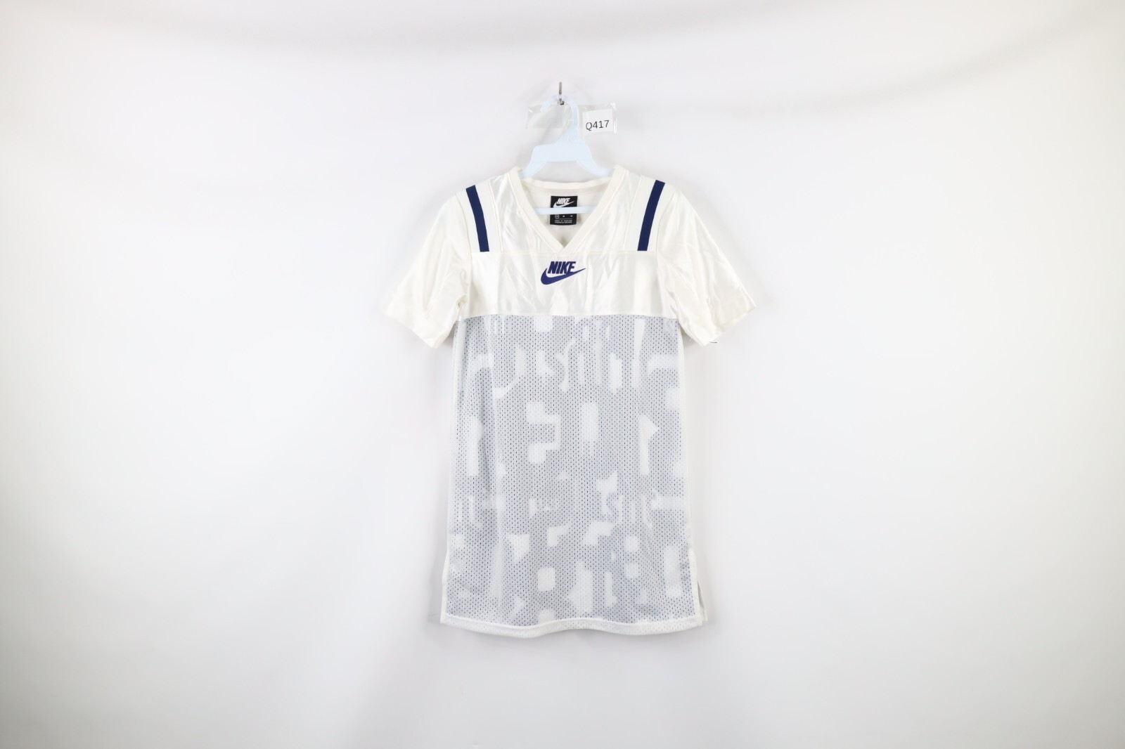 Nike Girls Size Medium Spell Out All Over Print Football Jersey Dress White