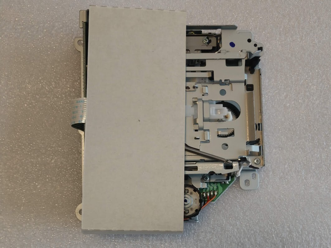 There are strips of vibration dampening foam material on the top of the drive that deteriorated a bit and stuck to the lid when it was removed from the radio. Obviously this has absolutely no bearing on functionality of the drive. It just makes it look a little ugly. If it's really bad, we may remove the strips with a razor blade and adhesive remover. Do NOT assume you received a used drive because it isn't a pretty little boxed item. It is EXACTLY what we have advertised here. Check our feedback. We're honest and reliable.