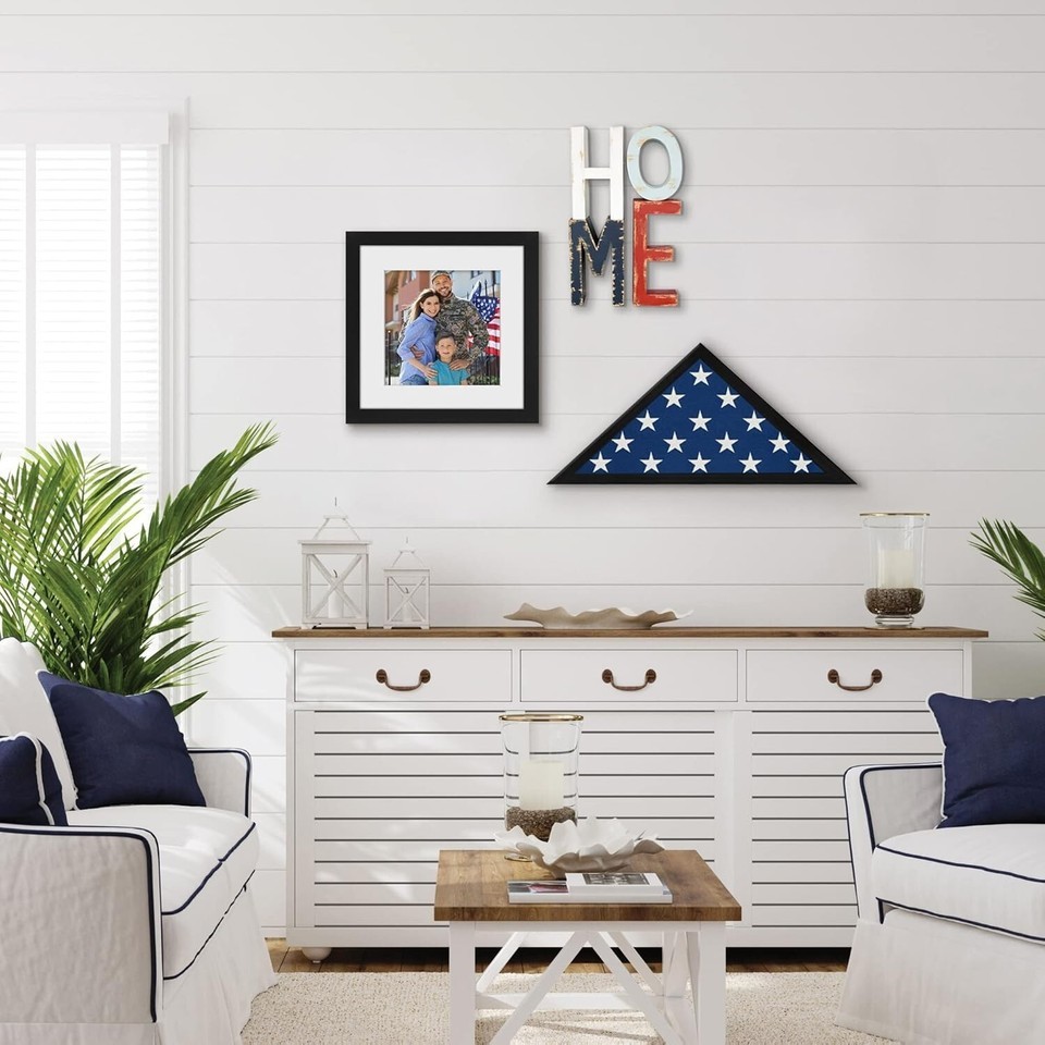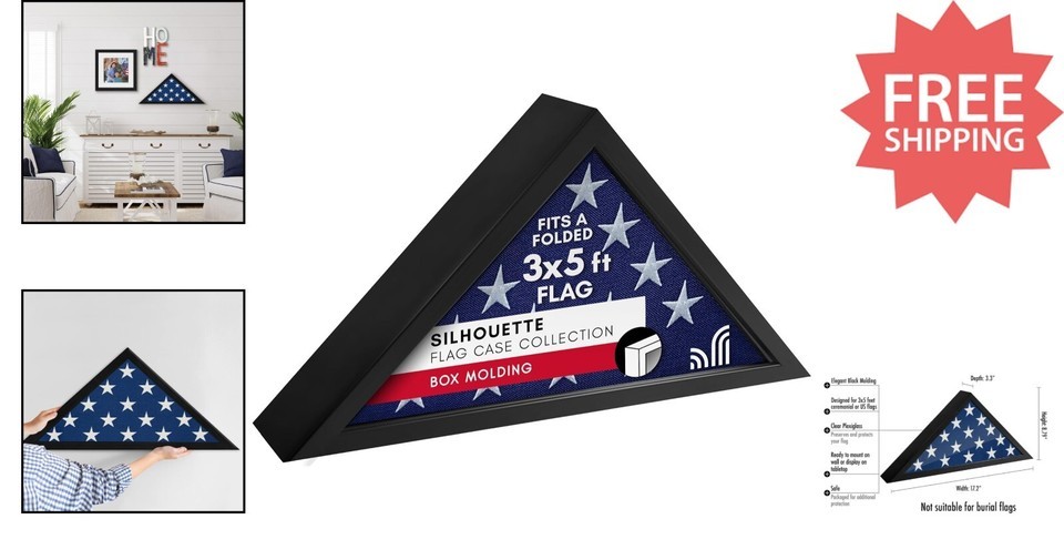Create a lasting tribute with this elegant flag frame, designed to honor a loved one?s service. Featuring a sleek black finish and a modern triangular elevated design, it complements any home or office decor, providing a timeless and personal memorial. Crafted from durable engineered wood with a polished plexiglass front, it securely displays a standard 3x5' folded American flag (flag not included). Measuring 8.8" high, 17.2" wide, and 3.3" deep, it offers versatile display options with included hanging hardware for wall mounting or can be placed on a tabletop, mantel, or shelf. Perfect for veteran and military families, this thoughtfully crafted piece preserves pride, memories, and heritage across generations. To ensure fast and reliable delivery, we work with multiple fulfillment partners and suppliers. Depending on availability and location, your order may ship from different warehouses or arrive in packaging that varies from item to item. Tracking details are typically provided shortly after shipment, and customer satisfaction remains our top priority. Please note that due to carrier policies and regional regulations, certain items may not be eligible for delivery to specific states or territories.