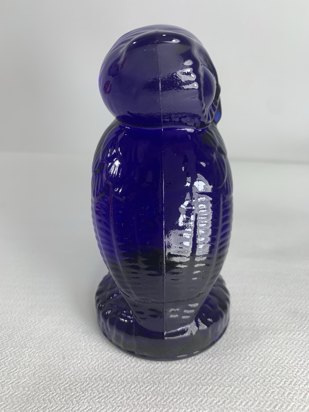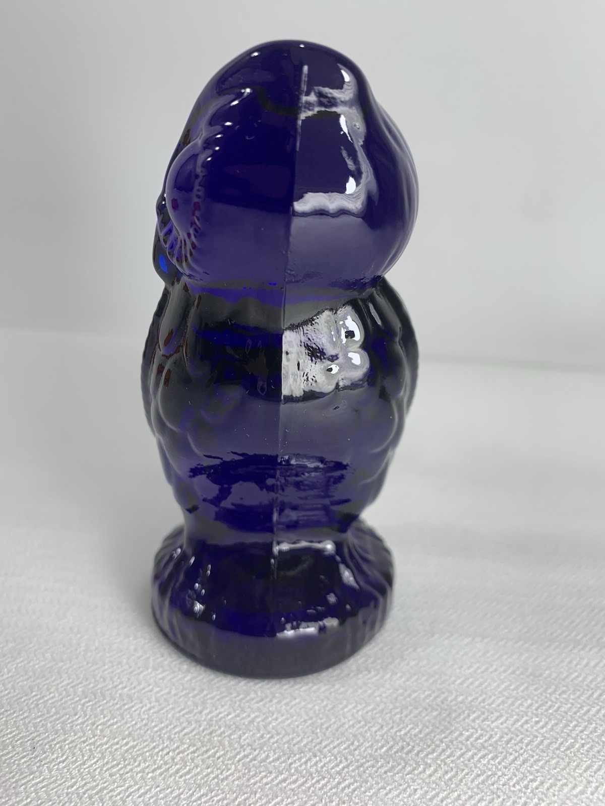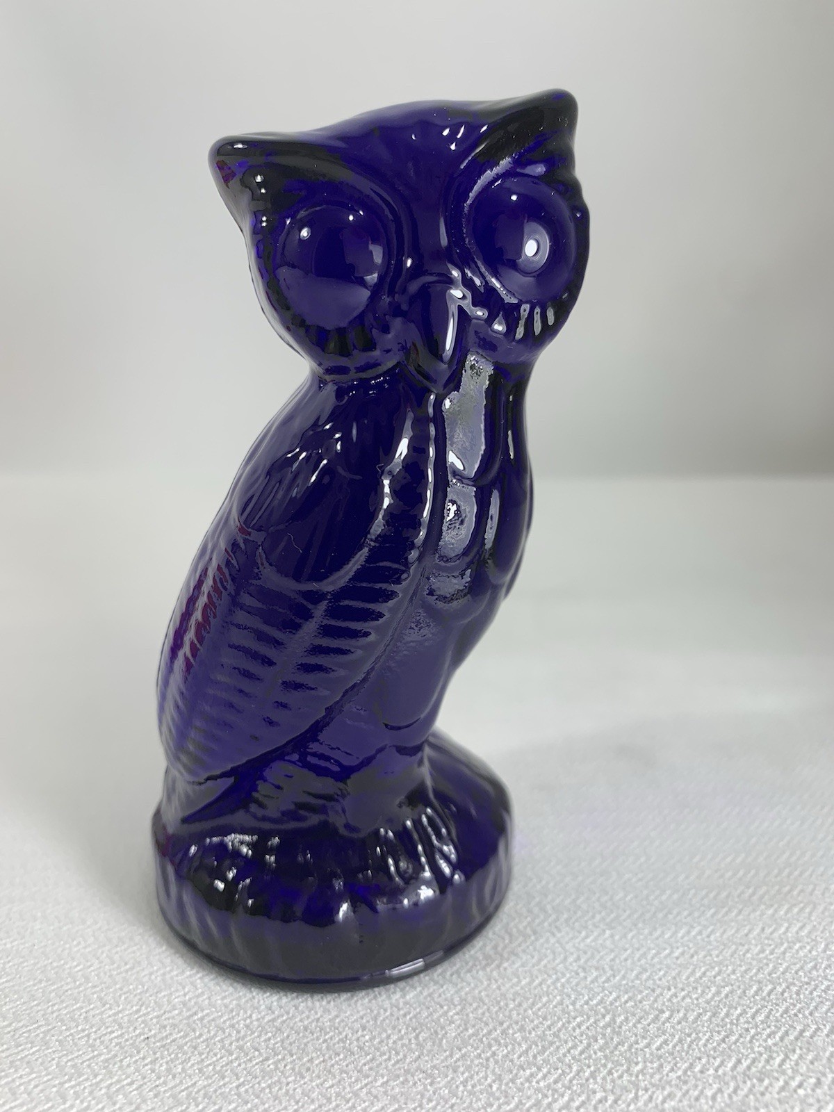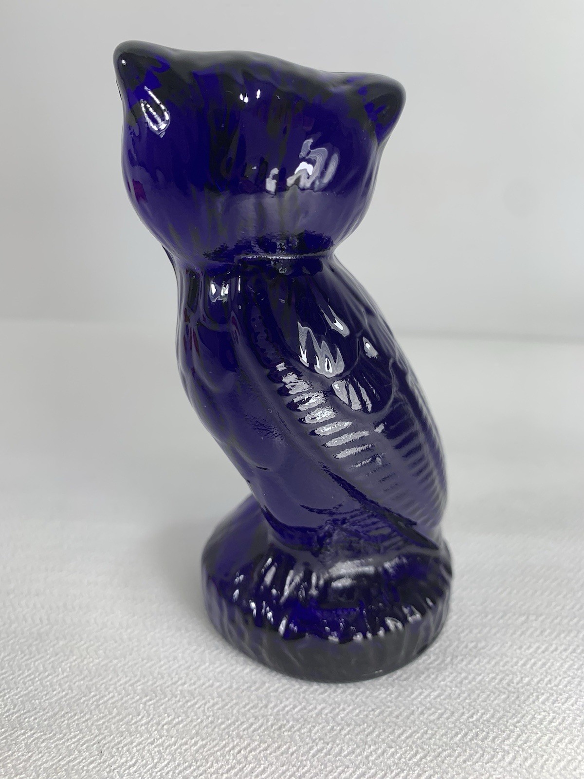 This is a super dark cobalt blue owl figurine. This guy stands approx. 4 1/2" tall, and I believe is made by Mosser Glass.