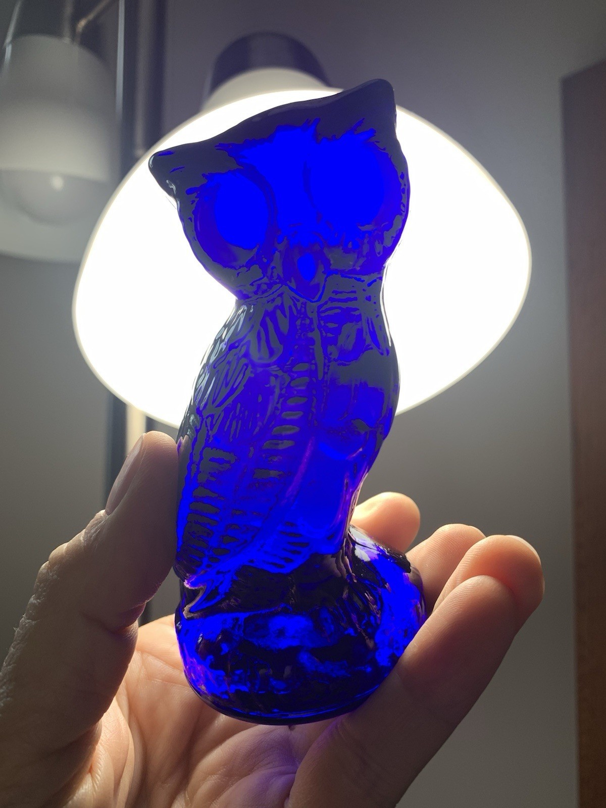 Vintage Mosser Glass Cobalt Blue Horned Owl 4" Decorative BIG EYES
