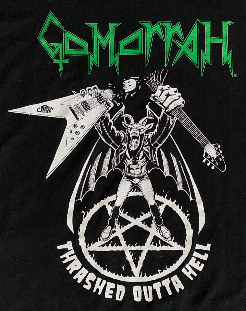 GOMORRAH Thrashed Outta Hell T-Shirt-Black-Gildan-XL-Heavy Metal Graphic Tee