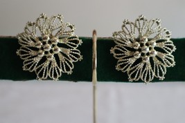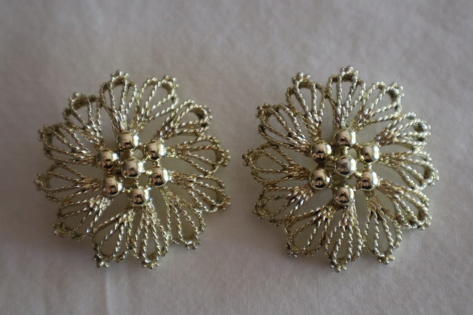 Vintage Signed Emmons Clip-on Earrings Gold Tone Flower Rope Petals 1.75" Dia