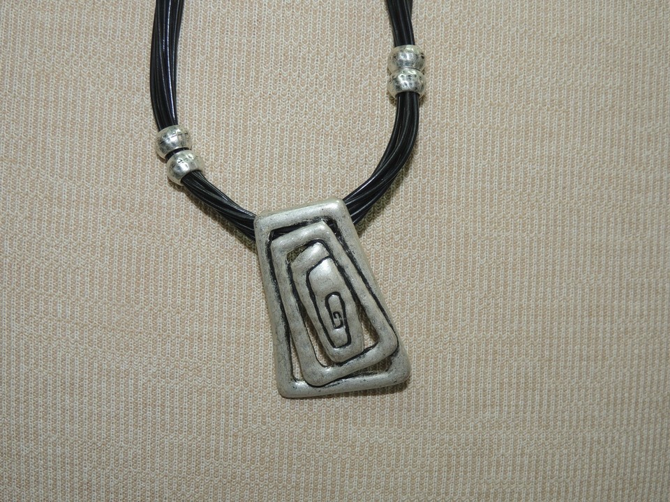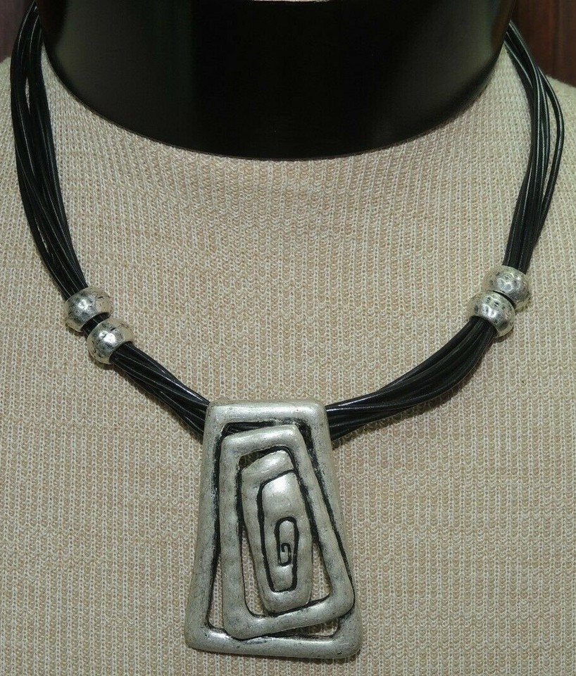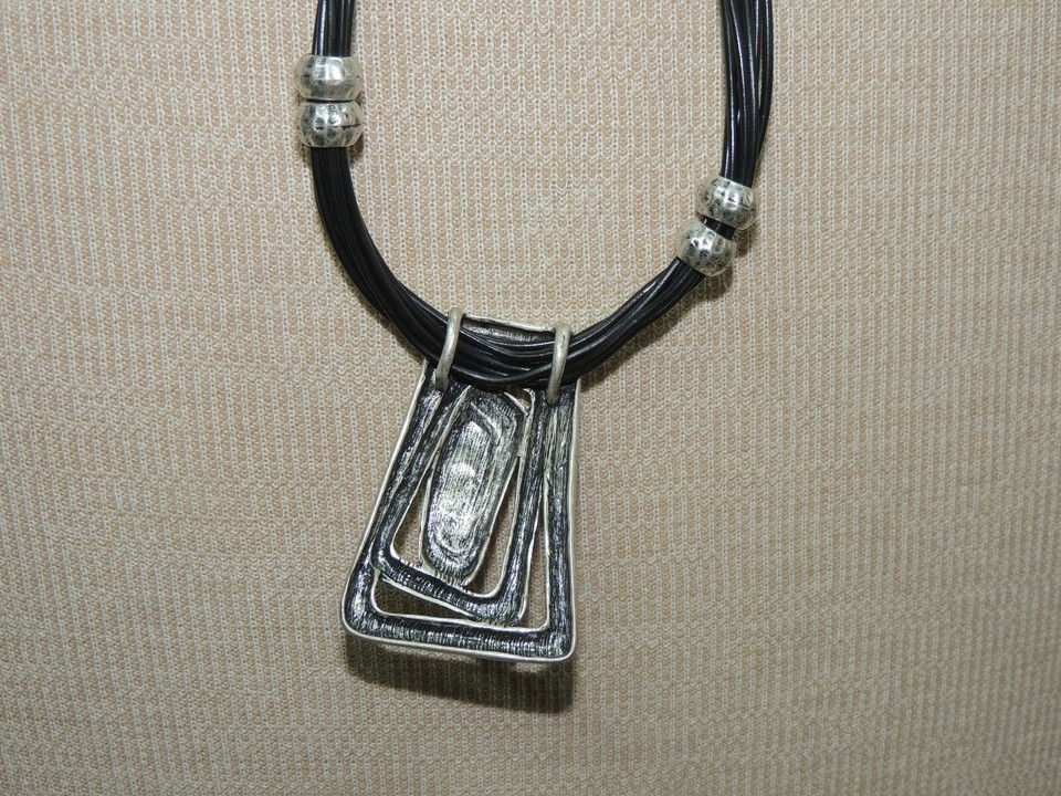 Pendant necklace 17.5-20" on black cord unmarked possibly plated pewter Israel