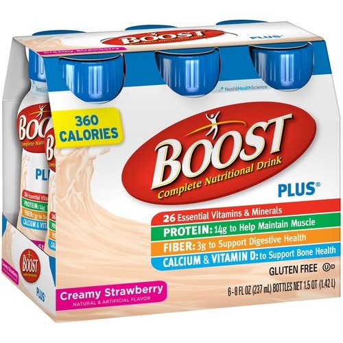 Boost Complete Nutritional DrinkGreat-tasting Boost Complete Nutritional Drink nutritional energy drink features 26 vitamins and minerals to promote compliance to help your patients achieve positive outcomes. And with clinical results showing an 85 percent compliance rate, Boost Complete Nutritional Drink is an easy recommendation. There are 8 ounces of Boost per serving and27 servings per case.Boost Complete Key Nutritional Benefits: 26 vitamins and minerals, plus carbohydrates and protein for a healthier energy alternative than caffeine Antioxidants Vitamin E, Vitamin C, beta-carotene and selenium As much calcium as an 8 fluid ounce glass of milk, yet its lactose-free Low in saturated fat (just 4 grams total fat, 5 milligrams cholesterol) These and many more nutritional ingredients come in three creamy, delicious flavors: Very VanillaRich ChocolateCreamy Strawberry