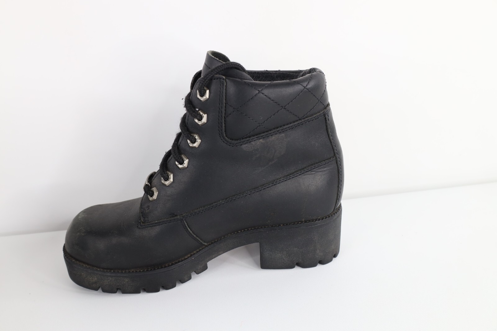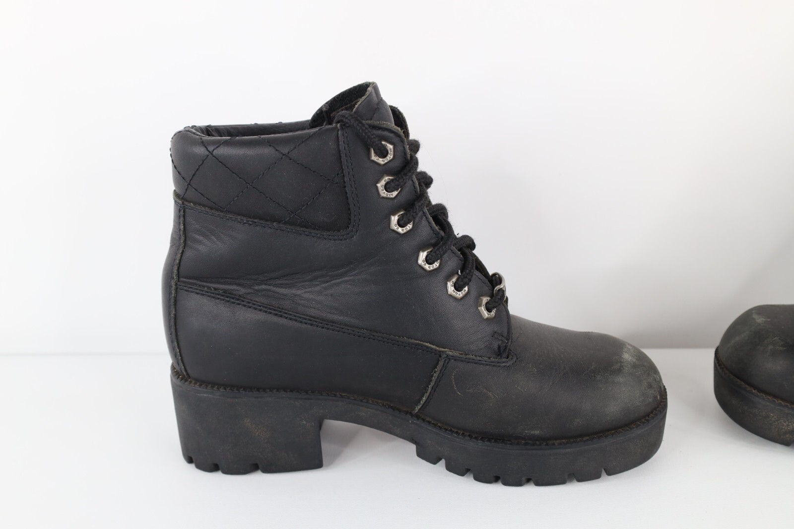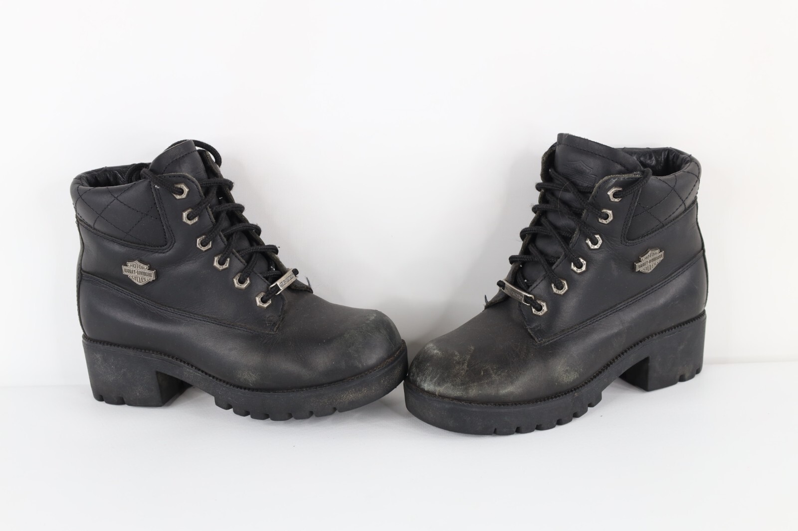 Vtg Harley Davidson Womens 7.5 Distressed Leather Chunky Platform Heeled Boots