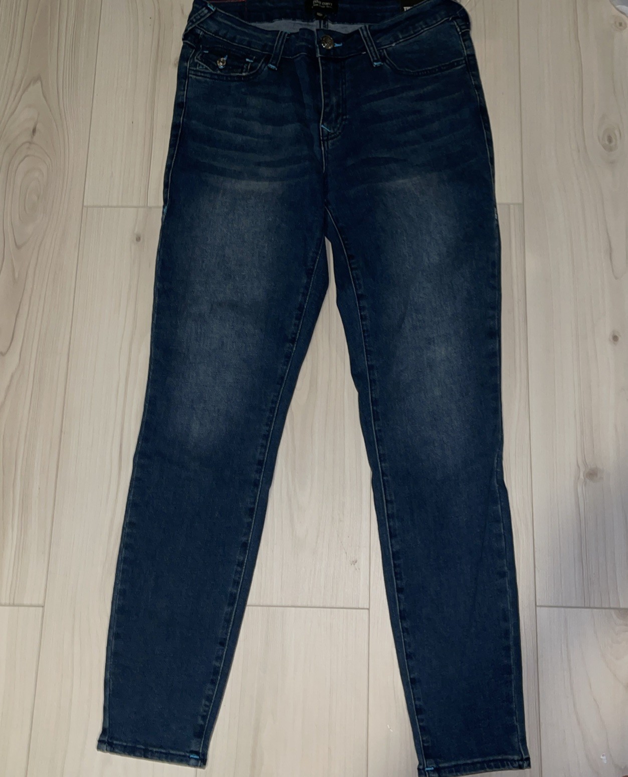 True Religion Jennie Curvy Mid Rise Super Skinny Flap Pocket Abyss Wash Sz 28