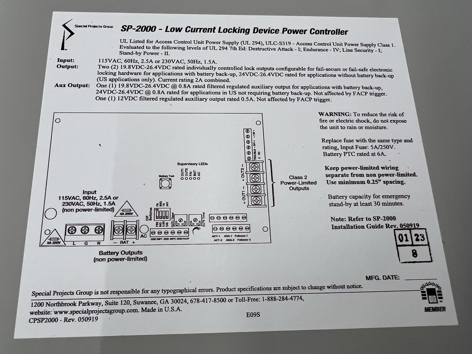 SPG Special Projects Group SP-2000 Low Current Locking Device Power Controller