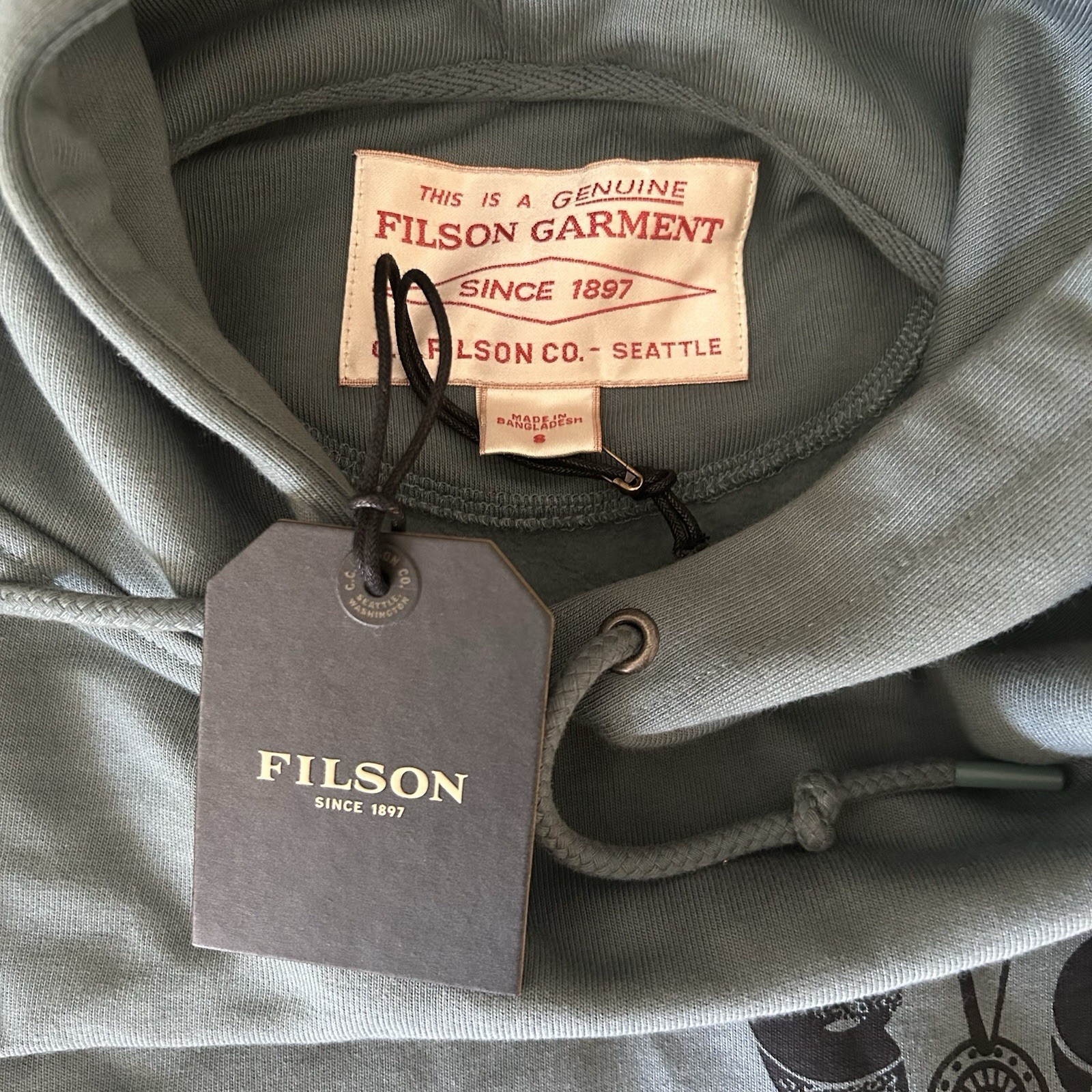 Filson Prospector Graphic hoodie sweatshirt green size small NWT New