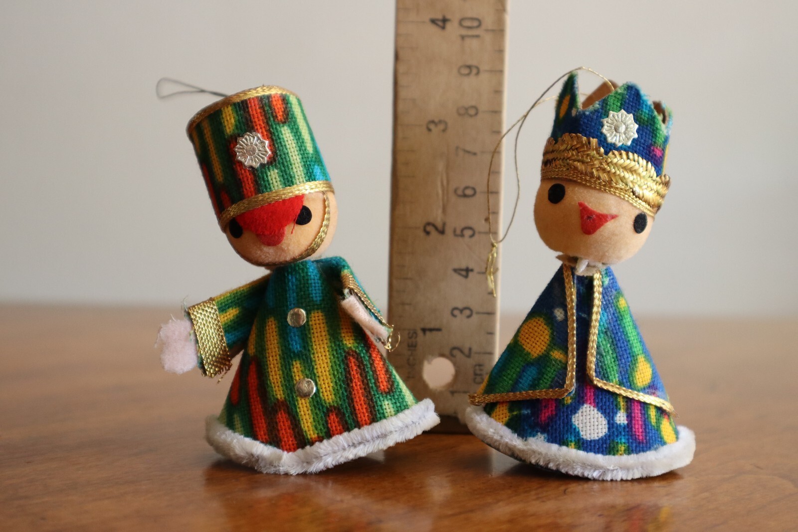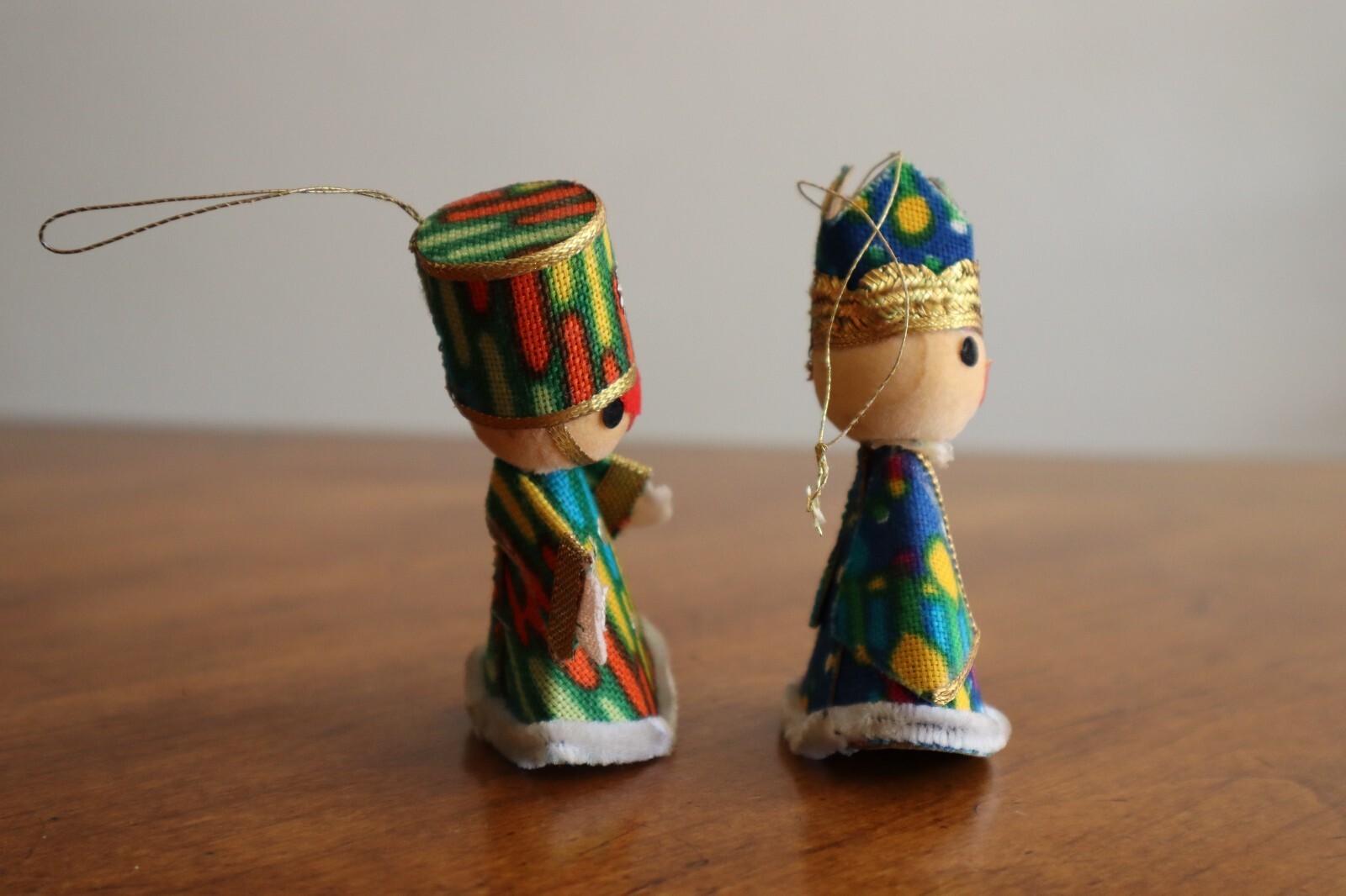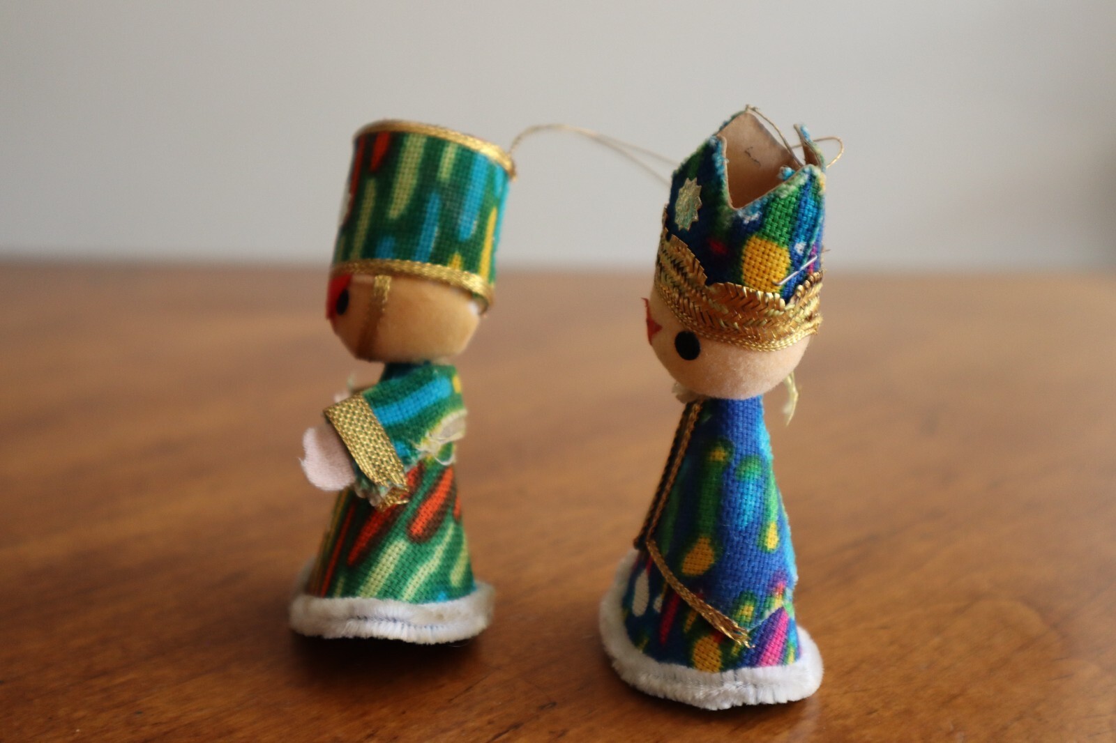 Lot of 2 Vintage Paper Cardboard Christmas Ornaments People Figures 3.5" Wisemen