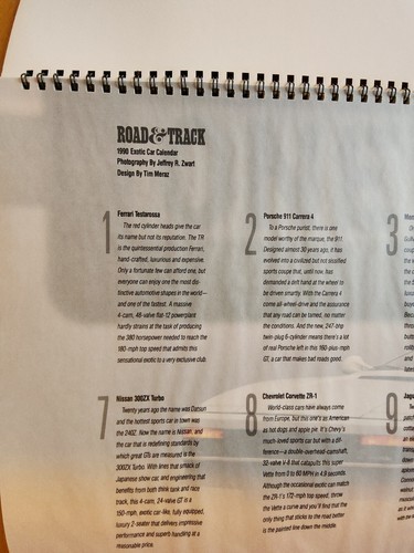 ROAD & TRACK Calendar Vintage 1990 Large Format 22" W x 15" T Wire Bound HTF
