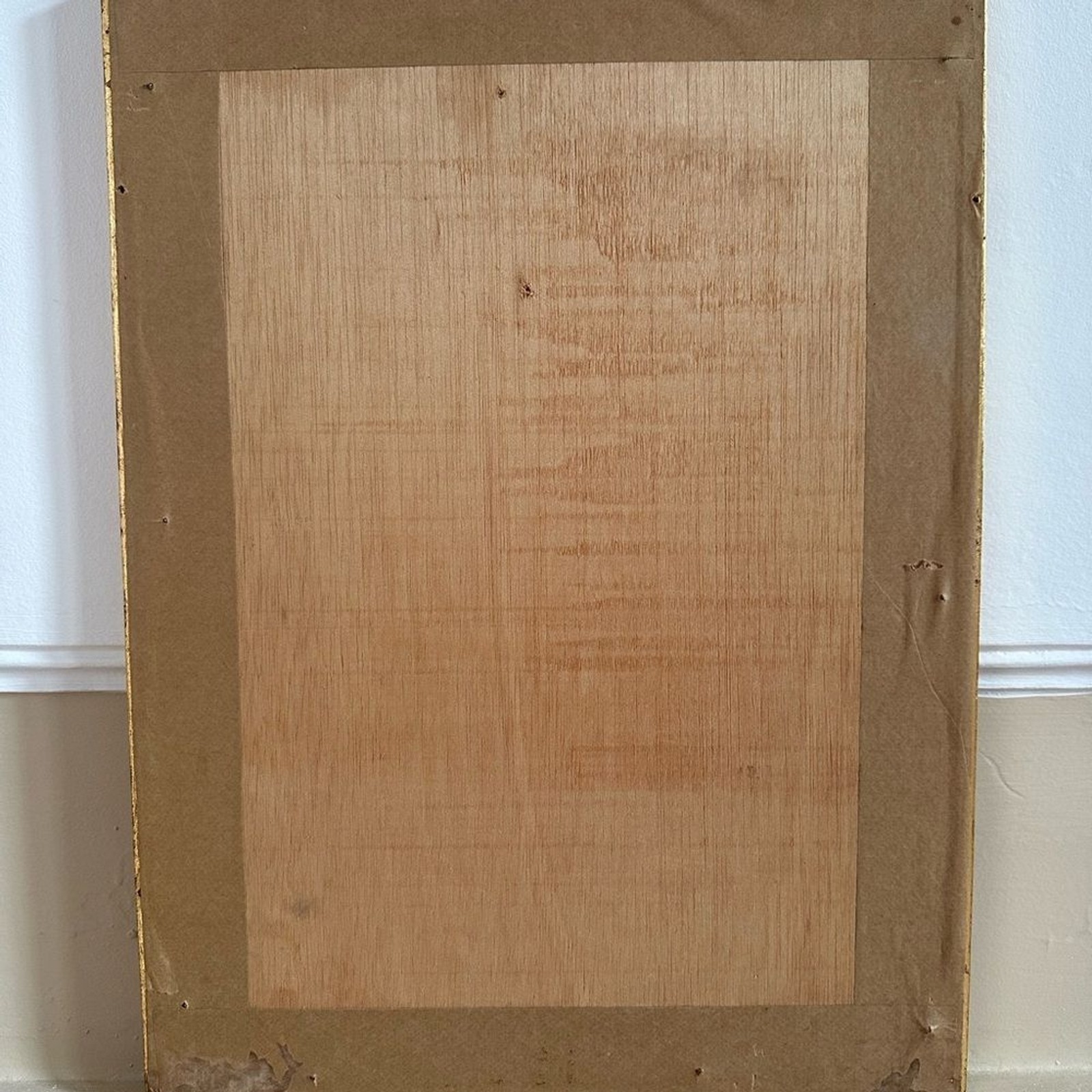 Great shape, framed behind a glass. Some old water damage? in few spots. Everything exactly as pictured. Does not come with a hook to hang (but you can install one)